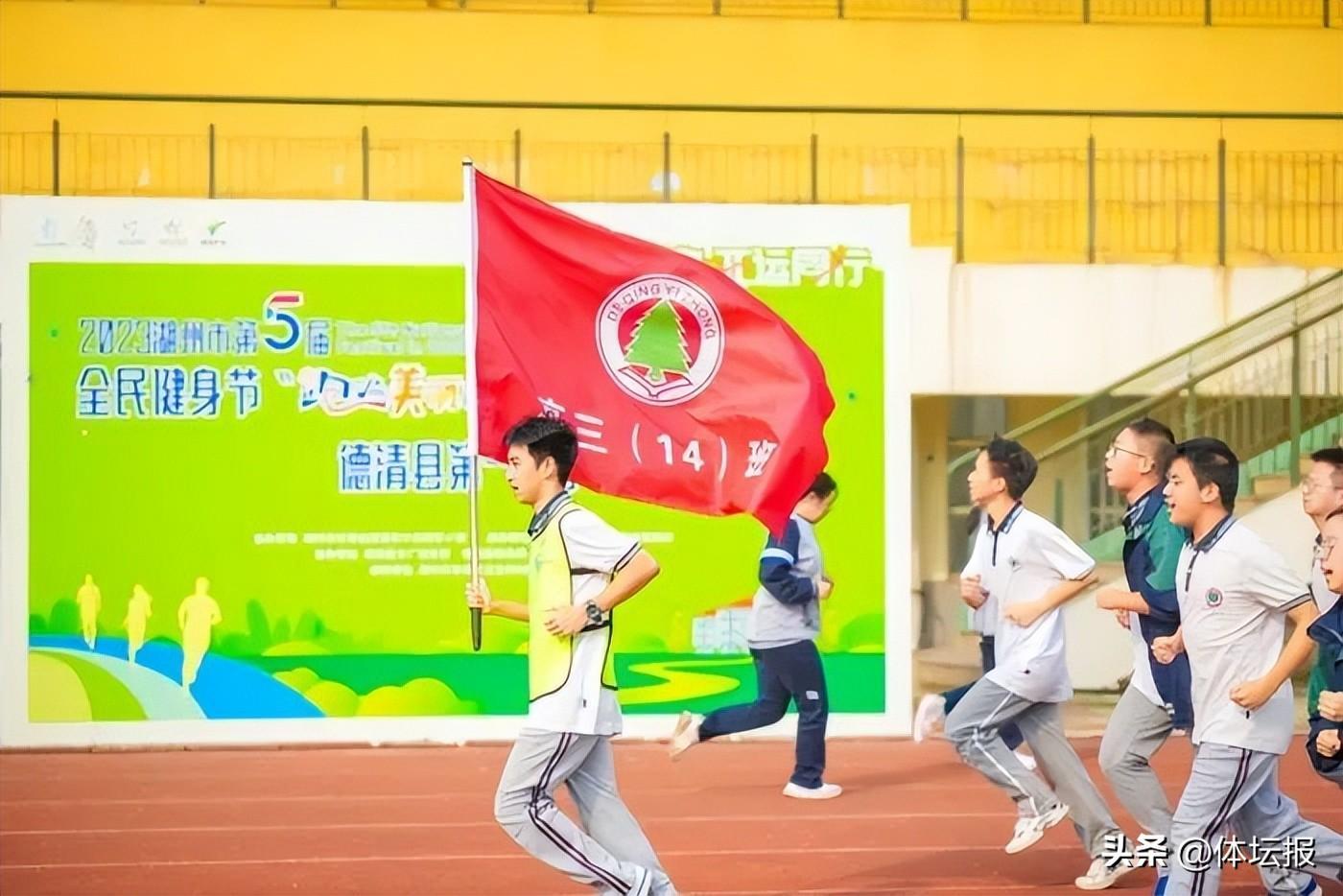 上午9時,2000多名參與路跑活動人員集結在德清縣第一中學的體育場上,他們以學校步道爲基礎,穿過教學樓,沿着跑操線路揮汗向前。