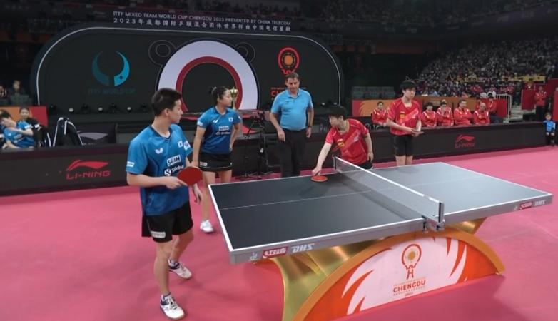 首盤混雙比賽,兩隊都希望能率先搶奪優勢,中國隊這邊,還是習慣性派出王楚欽與孫穎莎的組合,他們在與日本隊的比賽中意外告負,這場天王山之戰勢必承受着更大的壓力,“莎頭組合”也希望用一場酣暢淋漓的比賽掃除陰霾。