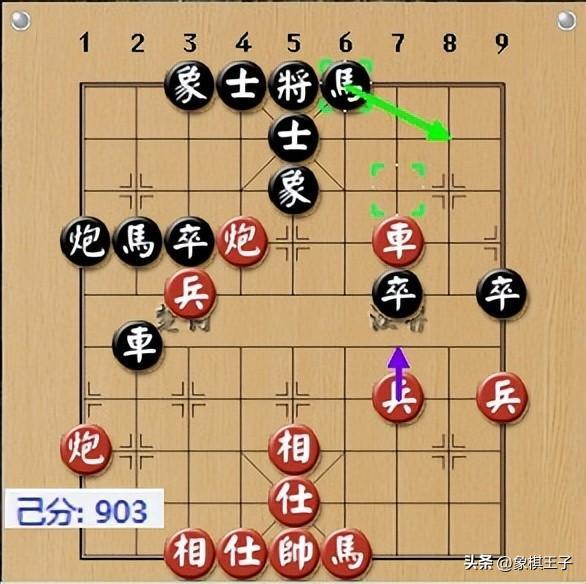 當下,黑暗伏馬6進5踩中兵後,直入紅左線踏八路車叫殺的手段,紅方無暇喫黑7炮,只得接受丟一子的現實。