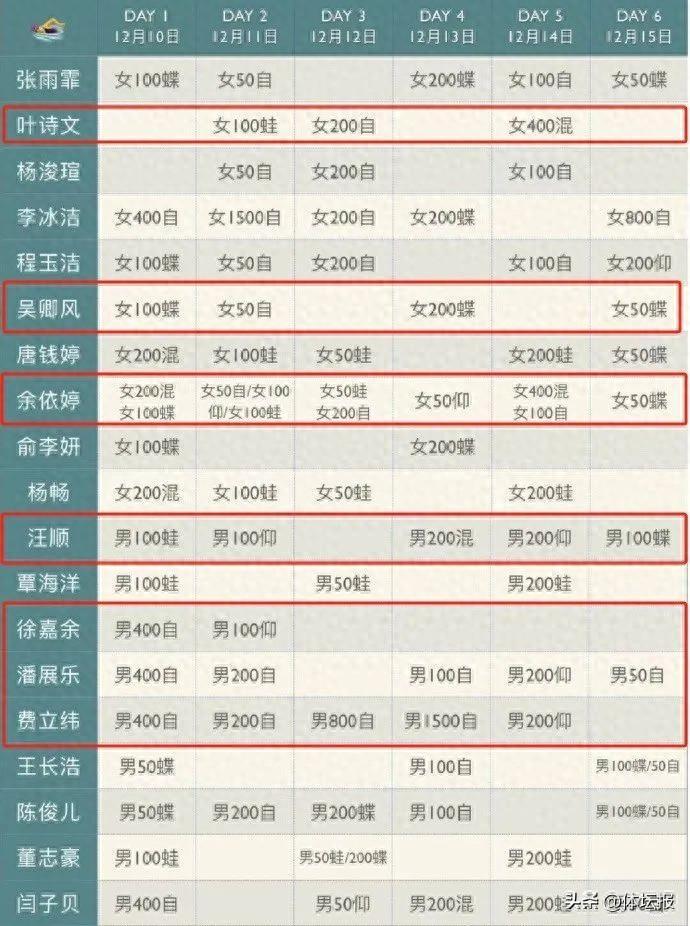 明日的比賽中,小將餘依婷依然參加三個項目的比賽;葉詩文將亮相女子100米蛙泳;徐嘉餘迎來男子100米仰泳的比賽;潘展樂則將在男子200米自由泳比賽中迎接其他選手的挑戰。