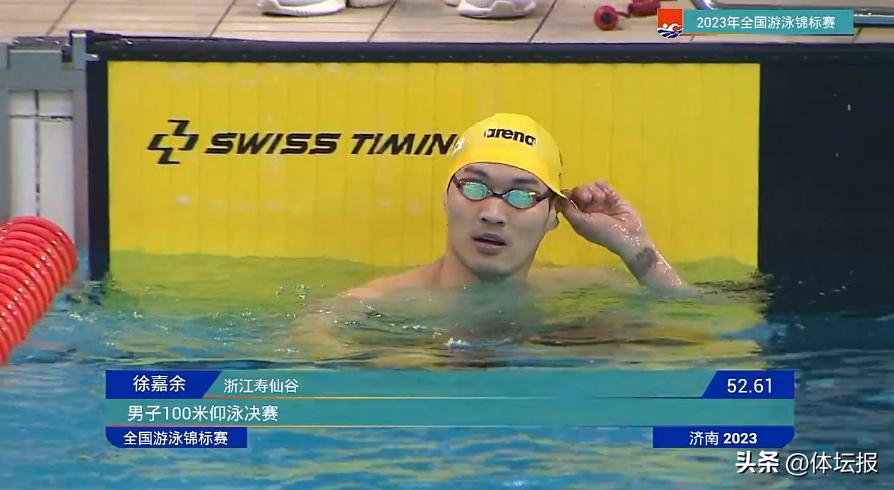自從2013年在全國游泳冠軍賽稱霸開始,徐嘉餘已經“統治”國內男子仰泳10年時間。在今晚的男子100米仰泳決賽中,他毫無懸念以52.61奪得金牌。