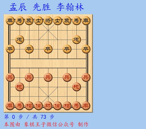 半決賽的廝殺,孟辰激鬥李翰林,兩人之局,孟辰執先,仙人指路對左中炮,紅還右中炮,拉開陣勢,直接開擊。