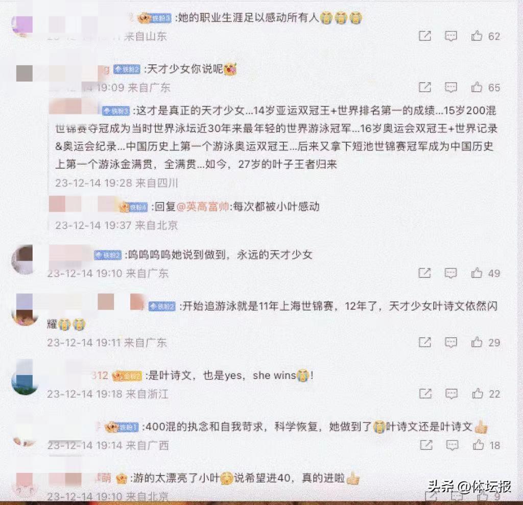 12月14日,2023全國游泳冠軍賽第五個比賽日,浙江選手繼續劈波逐浪,收穫2金1銀1銅。尤其是奧運冠軍葉詩文,在女子400米混合泳項目上以超多哈世錦賽A標的成績奪冠,重拾400混實力與信心,也感動了網友。