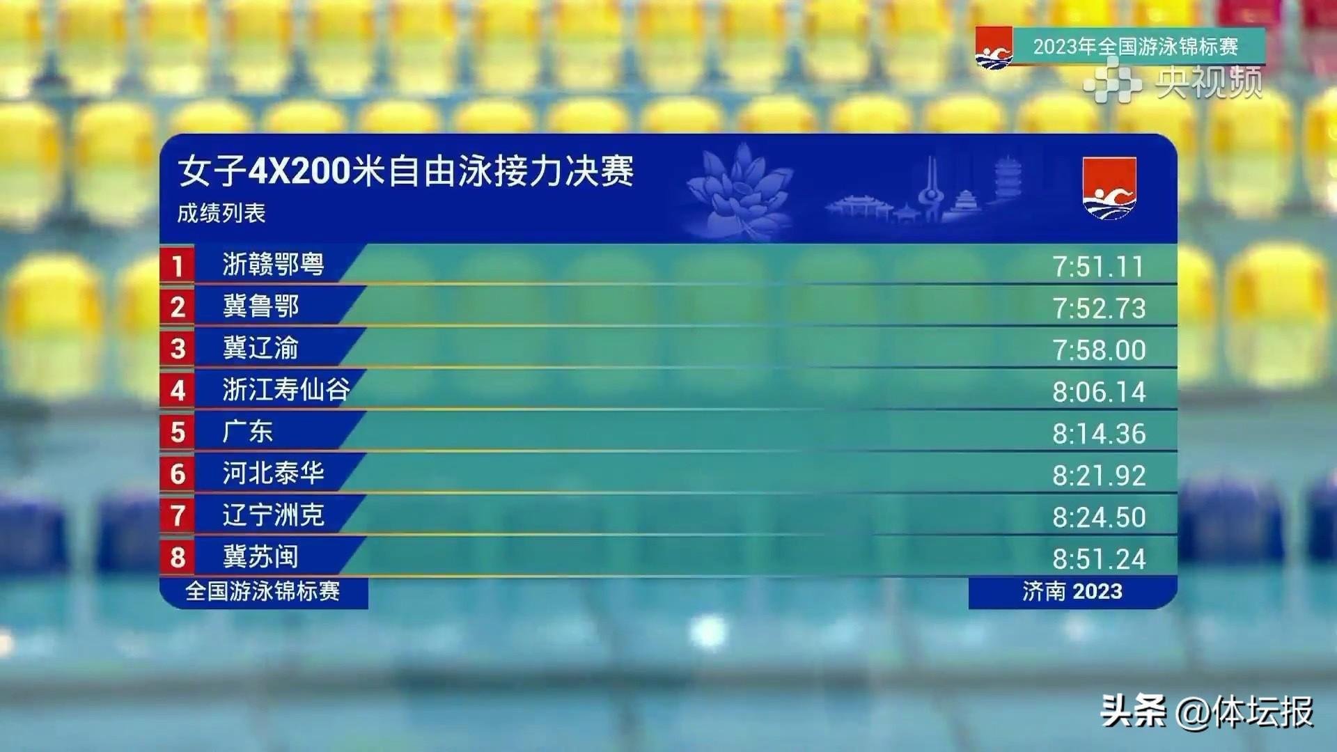 當晚的女子4x200米自由泳接力,柳雅欣所在的浙贛鄂粵獲得金牌,浙江隊位列第四;女子100米自由泳項目中,餘依婷位列第五。