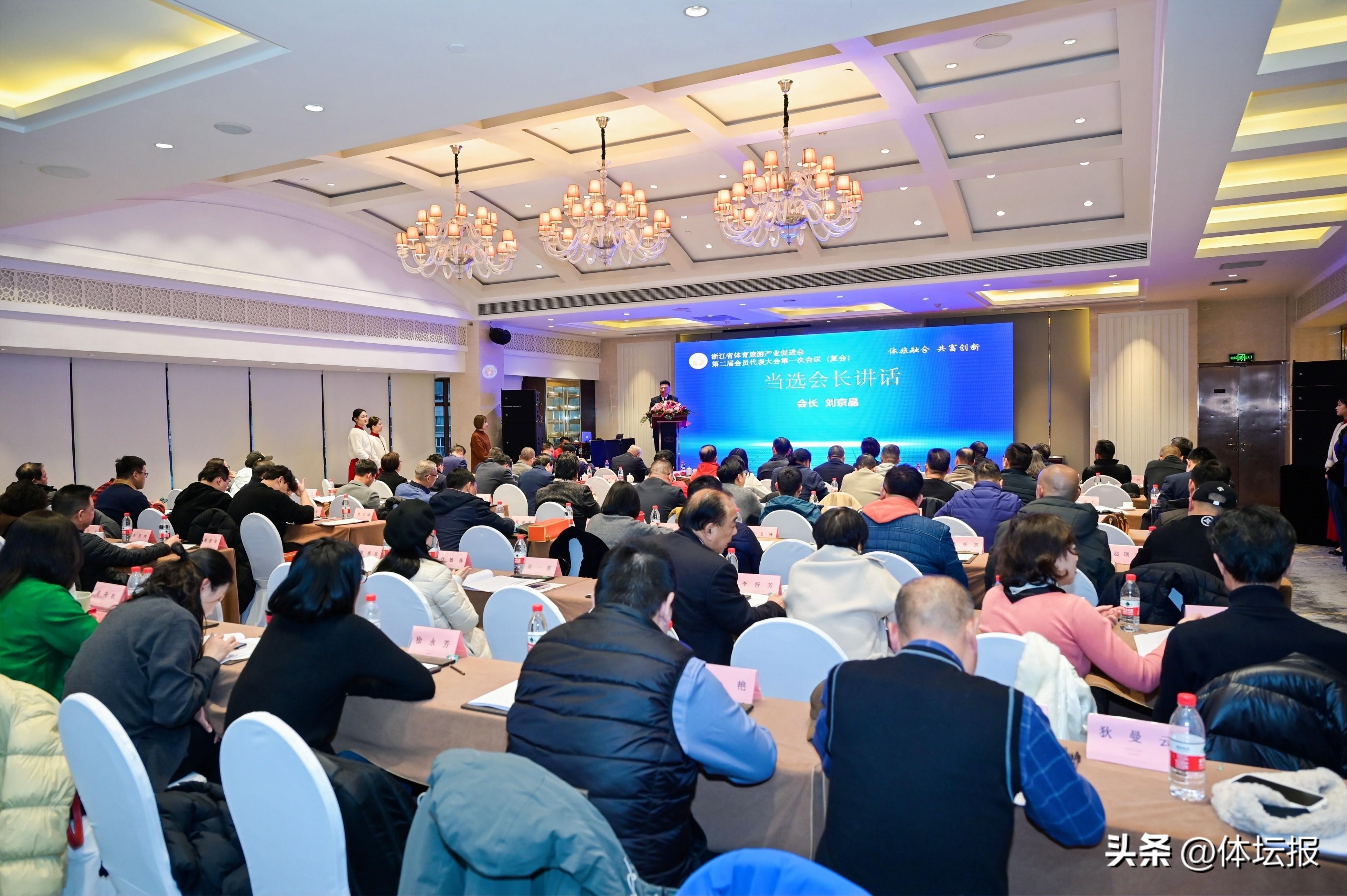 會議選舉產生浙江省體育旅遊產業促進會第二屆理事會、會長、副會長等,併爲當選第二屆理事會副會長(常務理事)單位、理事單位及會員單位頒發牌匾。此外,會議還向爲促進會發展作出特殊貢獻的單位頒發了“突出貢獻獎”。