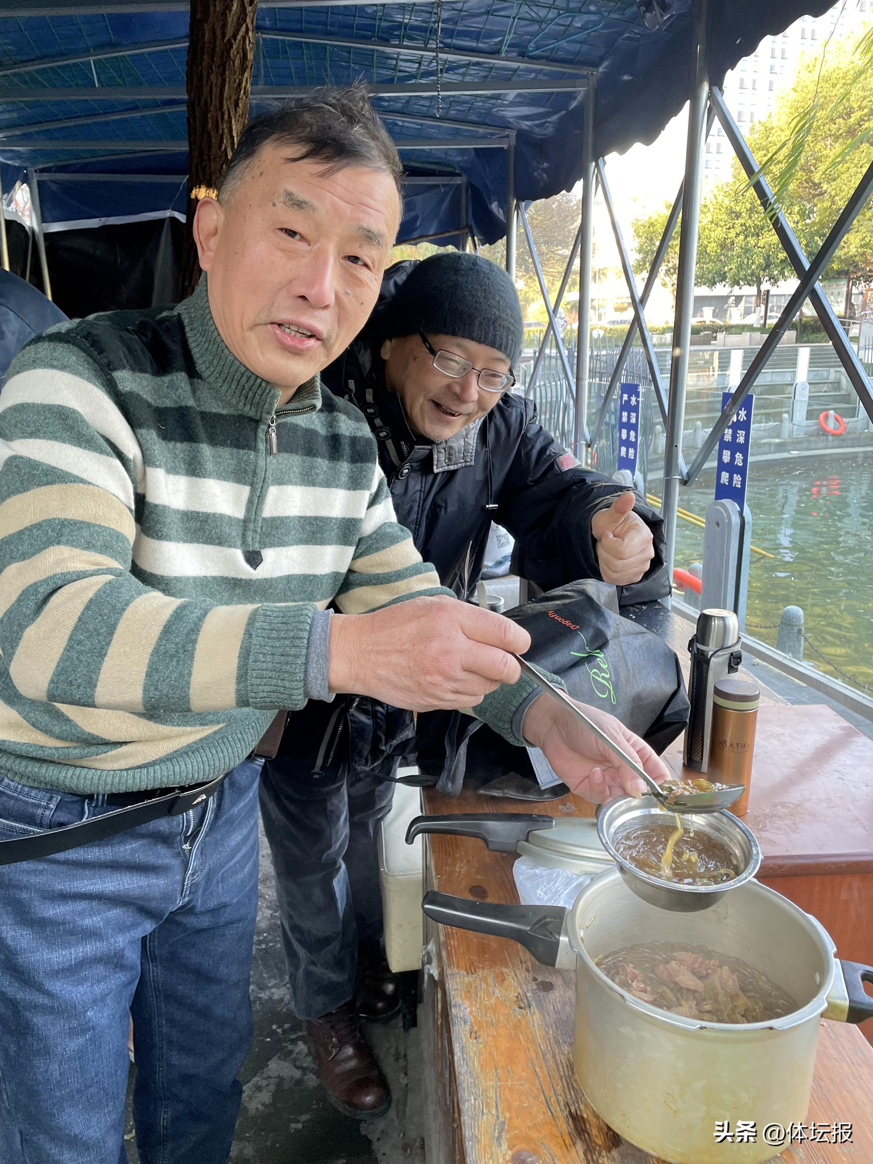 值得一提的是,岸邊放着一個鍋子,每個游完的人都能喫上一碗熱騰騰的牛肉粉絲,這是對孤“泳”者的獎勵,也是現場泳者自發的冬日關懷。艮山運河公園的部分冬泳愛好者因爲志同道合而結識,久而久之便組建了一支“杭州三潭晨泳隊”。隊長朱履平介紹,目前隊伍已有300餘名游泳愛好者加入,以退休老年羣體爲主,最高齡爲90歲,游泳時間集中在每天早上7—9點。大部分人每天都會堅持游泳鍛鍊,不遊的人也會來到現場擔當後勤保障人員,照看大夥兒的安全,提供保暖建議。