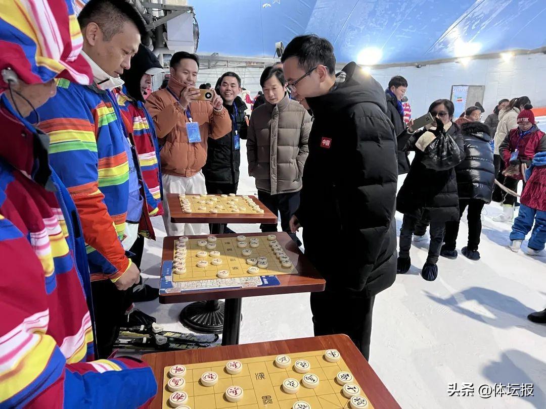 雪場另一邊,三張棋臺依次排開,象棋世界冠軍、杭州亞運會冠軍趙鑫鑫正在冰天雪地間迎來參賽選手的挑戰。第二次參與嘉年華賽事的何葉冰直言,“能與亞運冠軍對弈,這次來得太值得!” 作爲本屆冰雪運動嘉年華1號選手,趙鑫鑫調侃:“雪中對弈,一邊要動腦,一邊要禦寒,既有趣,也有難度,壓力不比亞運會小。”