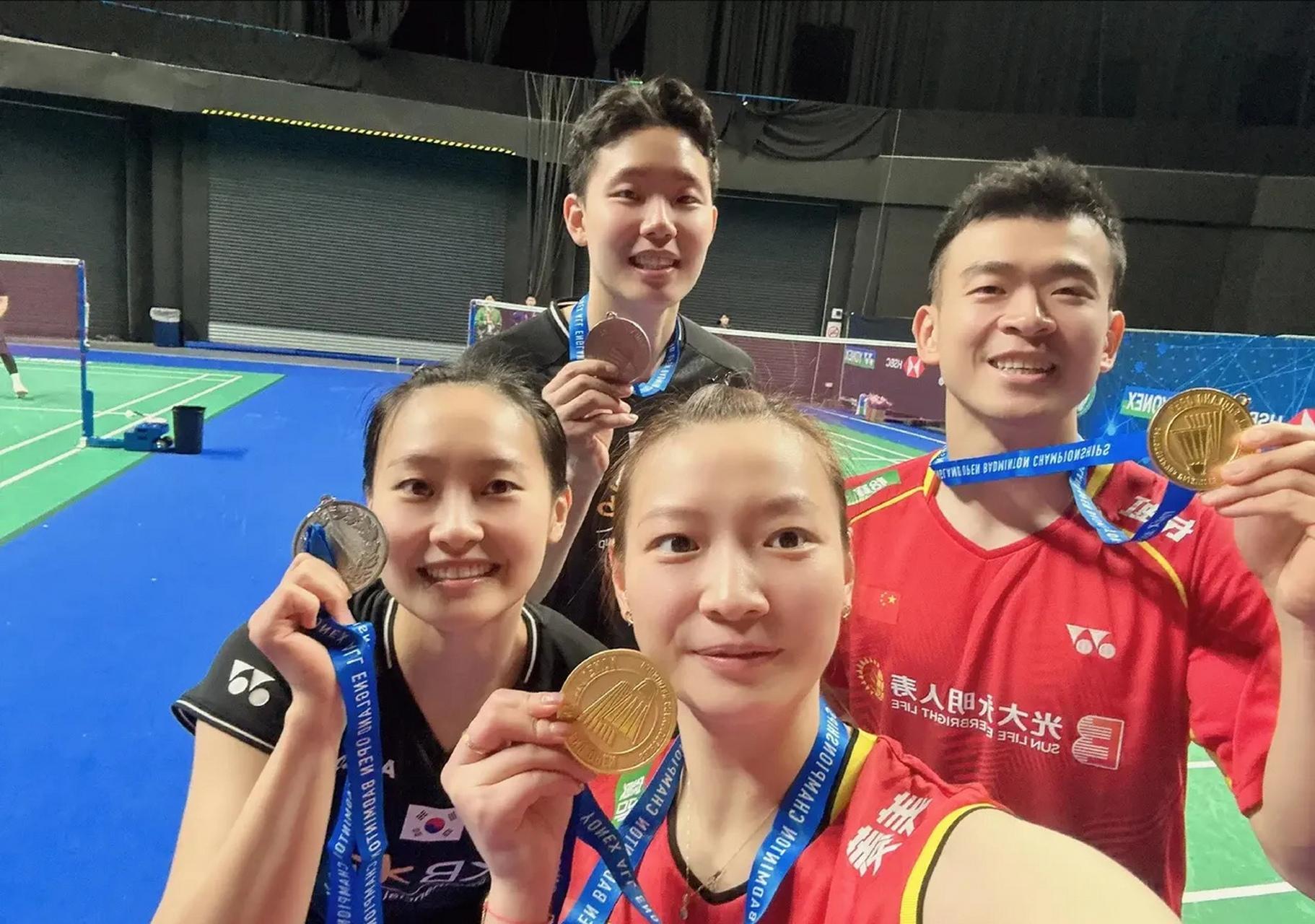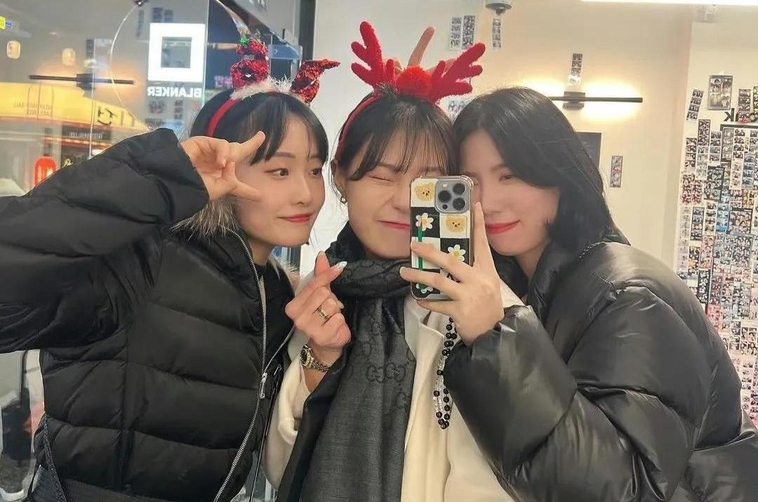 之前在杭州參加國際羽聯年終總決賽,蔡侑釘就曾受主辦方的邀請,拍攝了一組聖誕氛圍拉滿的照片:“肉丁”還穿着比賽服,看上去有些拘謹,但這次回到韓國,與姐妹們團聚,私下也更加放得開了。