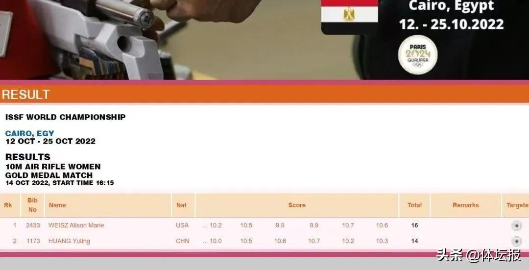 在埃及開羅當地時間10月14日舉行的射擊(步手槍)世錦賽上,年僅16歲的浙江小將黃雨婷在女子10米氣步槍項目摘銀,爲中國隊再添1個巴黎奧運會參賽席位。