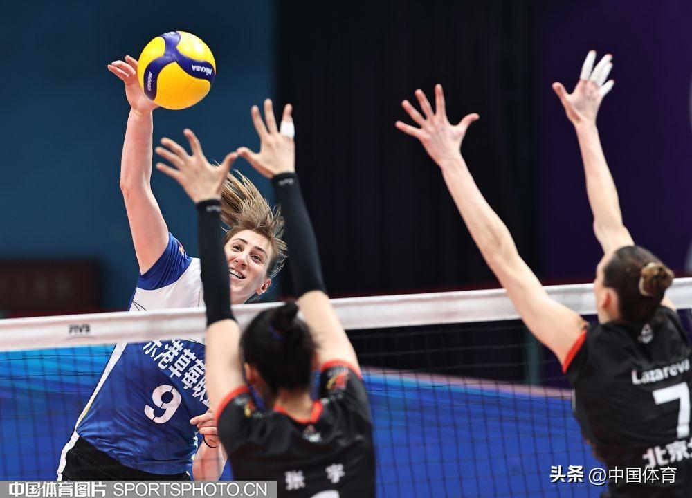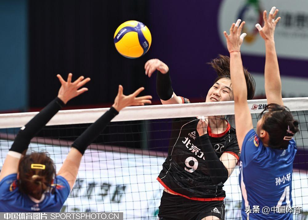 中國體育訊 12月30日,2023-2024賽季中國女子排球超級聯賽1/4決賽第二回合,首回合憾負的北京北汽(黑衣)主場迎戰遼寧東港草莓(藍衣)。雙方激戰五局,最終北京北汽以大比分3比2逆襲對手,將總比分扳成1比1平。雙方將於1月2日進行決勝場的比拼,以爭奪四強最後一席。當日其他幾場比賽中,天津渤海銀行、上海光明優倍和江蘇中天鋼鐵3隊再次擊敗各自對手,在三場兩勝制的系列賽中以總比分2比0獲勝成功鎖定四強。(中國體育圖片 王憲民 攝)