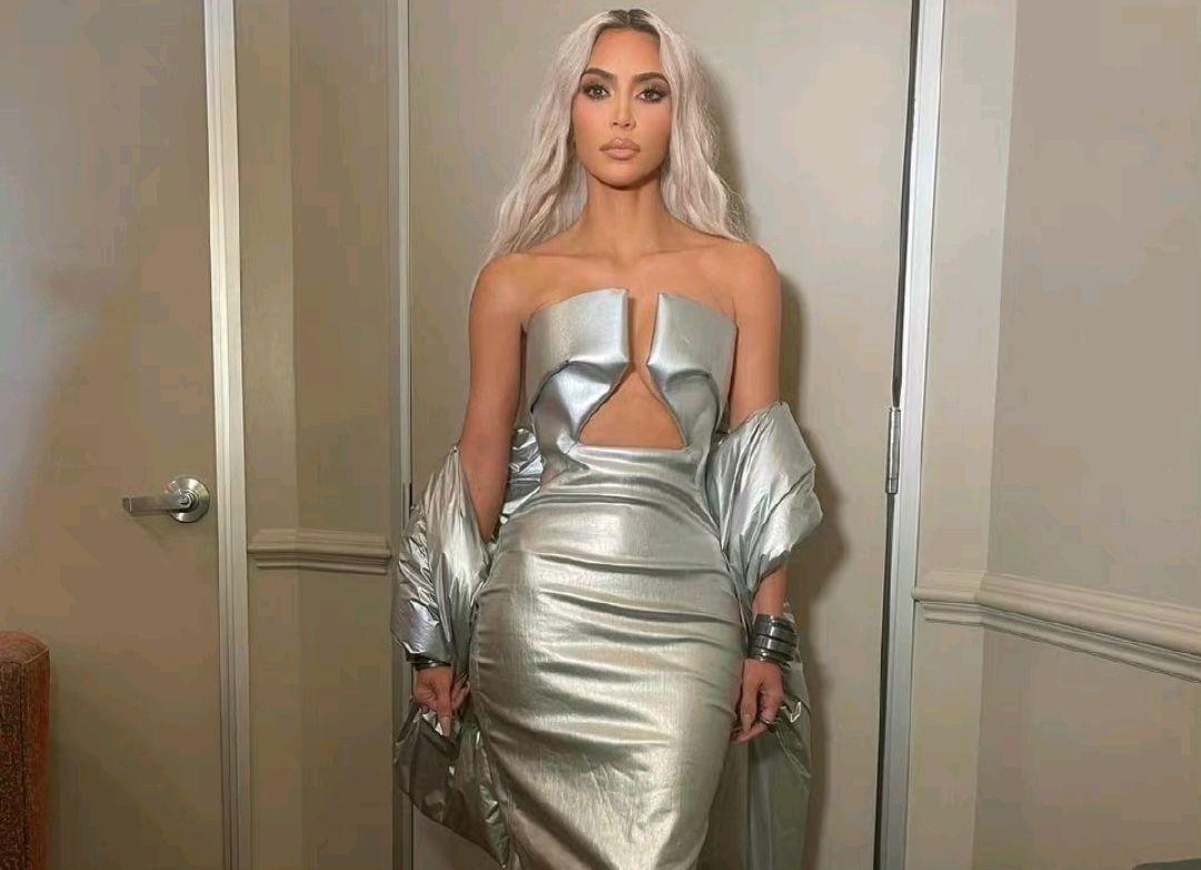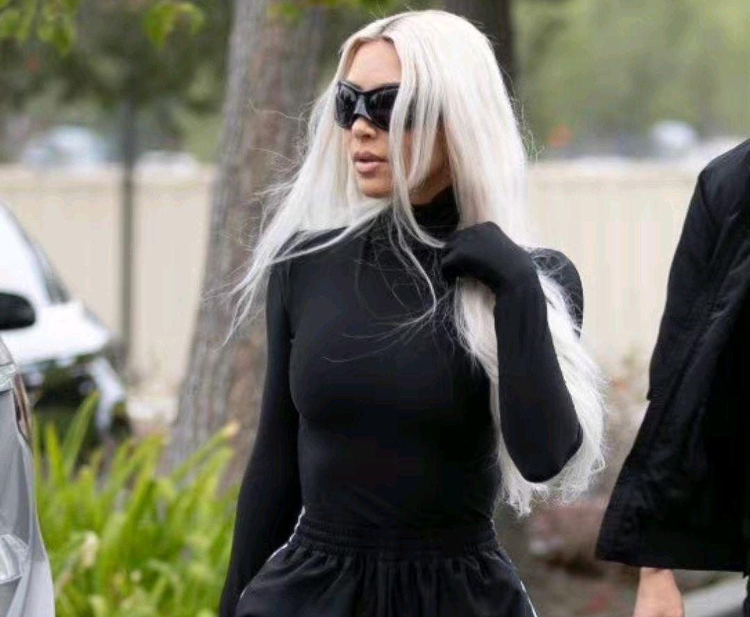最關鍵的是,金卡戴珊還把一頭白色長髮披了下來,髮梢直垂到腰,隨風飄逸,真的是太酷了。