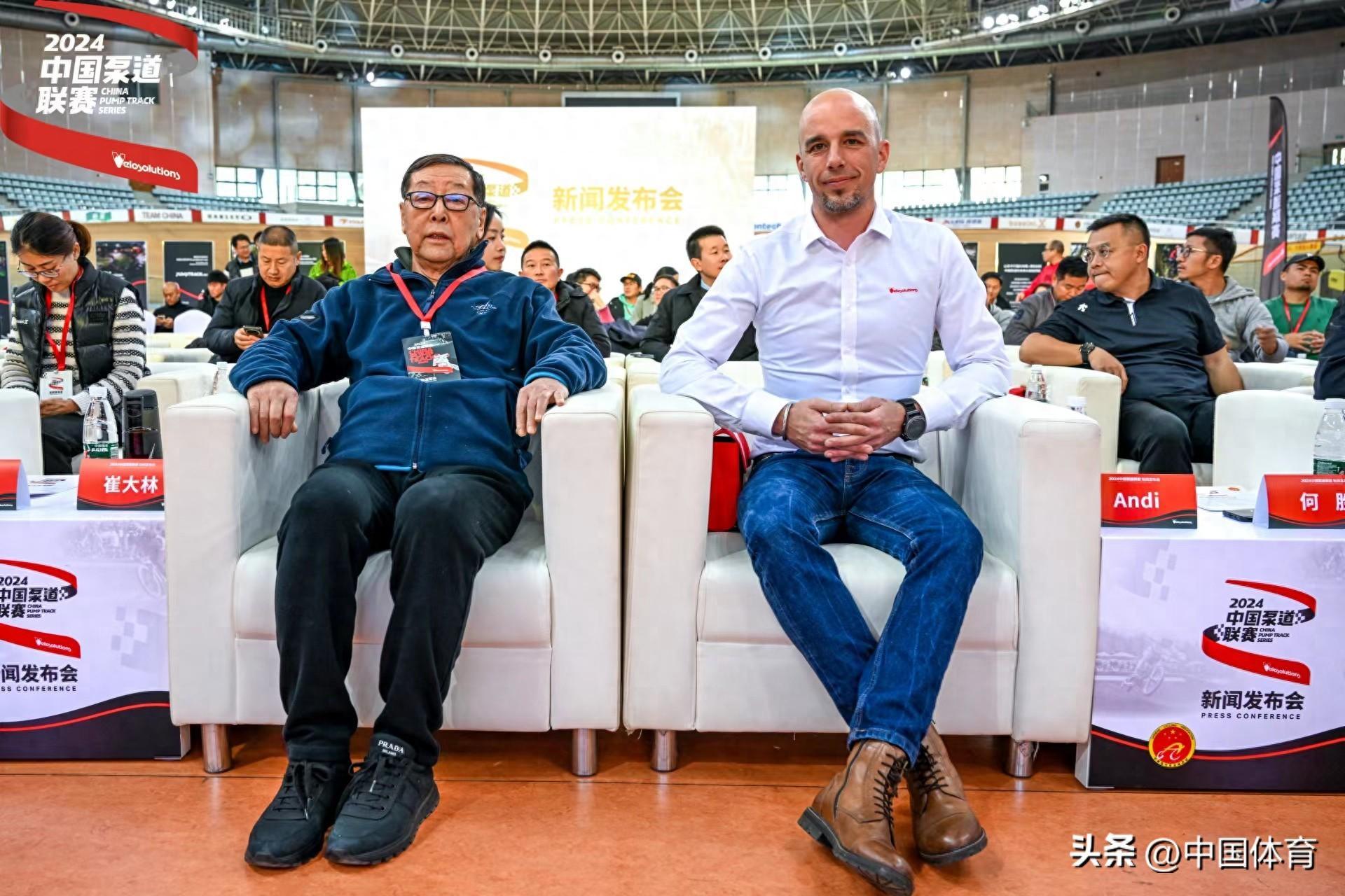 中國自行車運動協會主席崔大林(左)出席聯賽啓動儀式