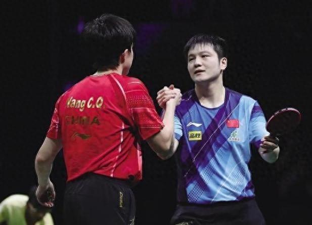 首局兩人就打得難解難分,王楚欽憑藉關鍵球的處理以11-8先拔頭籌。第二局樊振東開局不利,王楚欽連續得分迅速拉開分差,以11-9再贏一局。第三局王楚欽5-1領先,樊振東一度追到10-10,但王楚欽連得2分以14-12險勝。第四局樊振東開局4-1領先,但王楚欽後來居上以11-7鎖定勝局。![]()