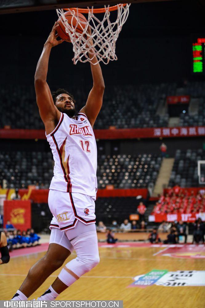 中國體育訊 1月11日,2023-2024賽季CBA聯賽第28輪的一場比賽,在深圳龍崗大運中心體育館舉行。深圳馬可波羅主場以109比100擊敗浙江稠州金租。本輪之後,深圳馬可波羅以17勝11負超過上海隊升至積分榜第七。(中國體育圖片 黃志 攝)