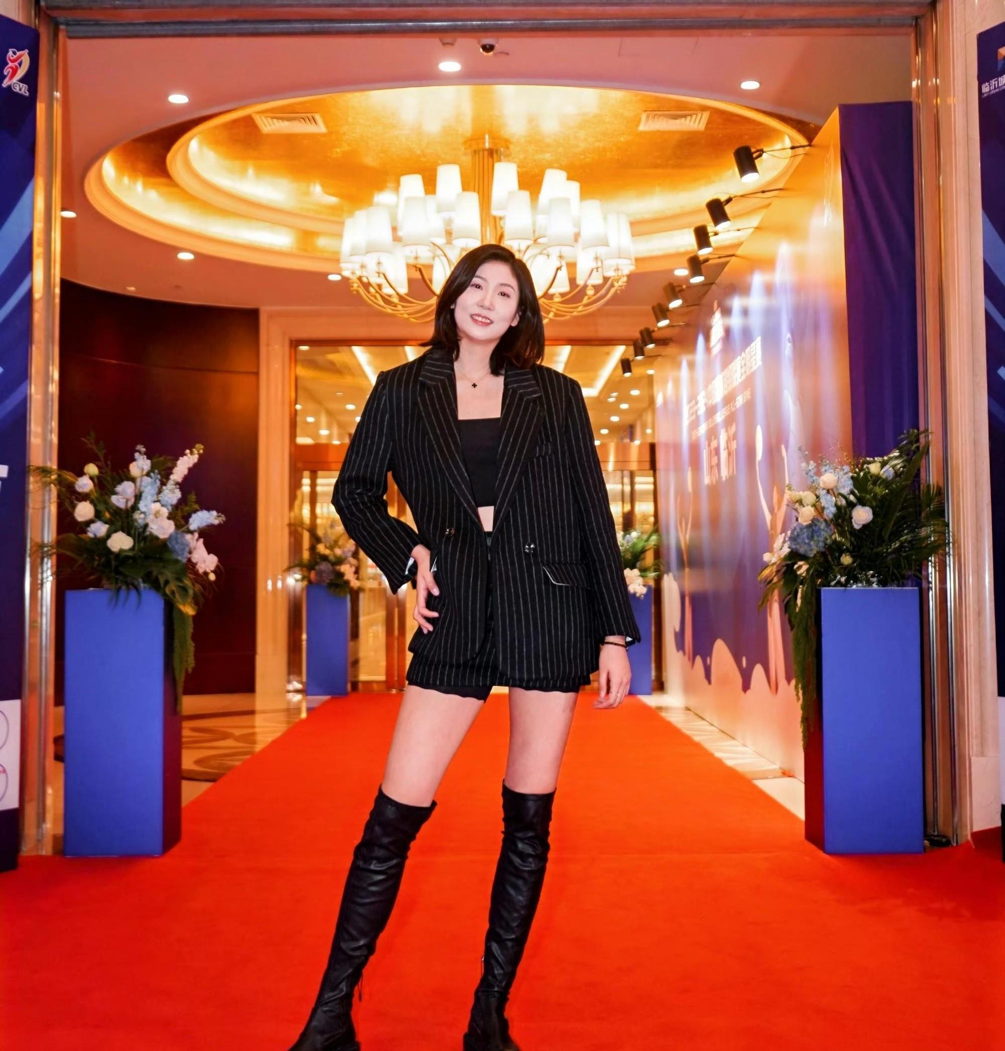 除了袁心玥之外,還有一位副攻球員打扮起來也十分美麗,和平時在球場上判若兩人,她就是曾經袁心玥的隊友,前八一女排的副攻球員高意。高意在賽場上一直十分樸素,所以在大家看來也只是一個可愛的小姑娘,五官比較稚嫩圓潤,結果沒想到在這次的簽到儀式上,她身穿一身黑色的短款西裝,配置同色系的性感抹胸,同時微微露出腹部肌肉,看起來十分性感。一雙大雙腿在過膝長靴的襯托下更加的醒目,十分性感!
