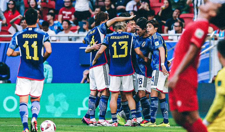 不過日本還是強,在上半場補時階段,他們又突然發力,連入2球,先是遠藤航助攻,南野拓實完成梅開二度的好戲,隨後中村敬鬥禁區弧頂一腳世界波破門,日本再度領先。