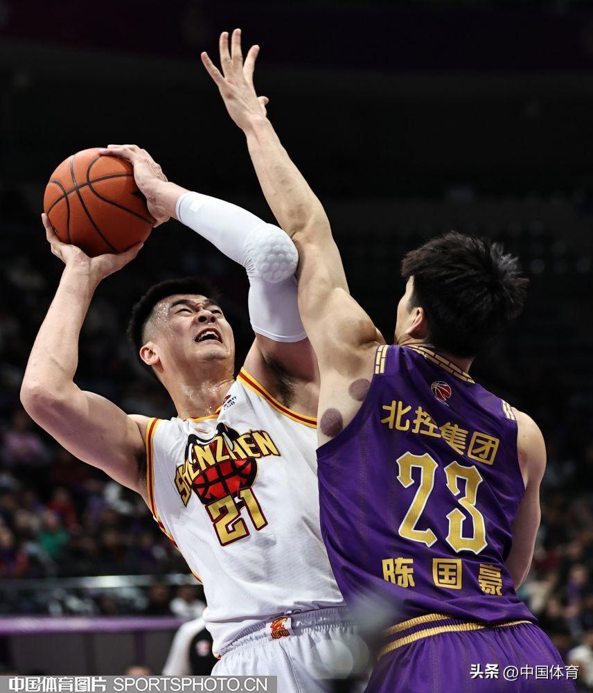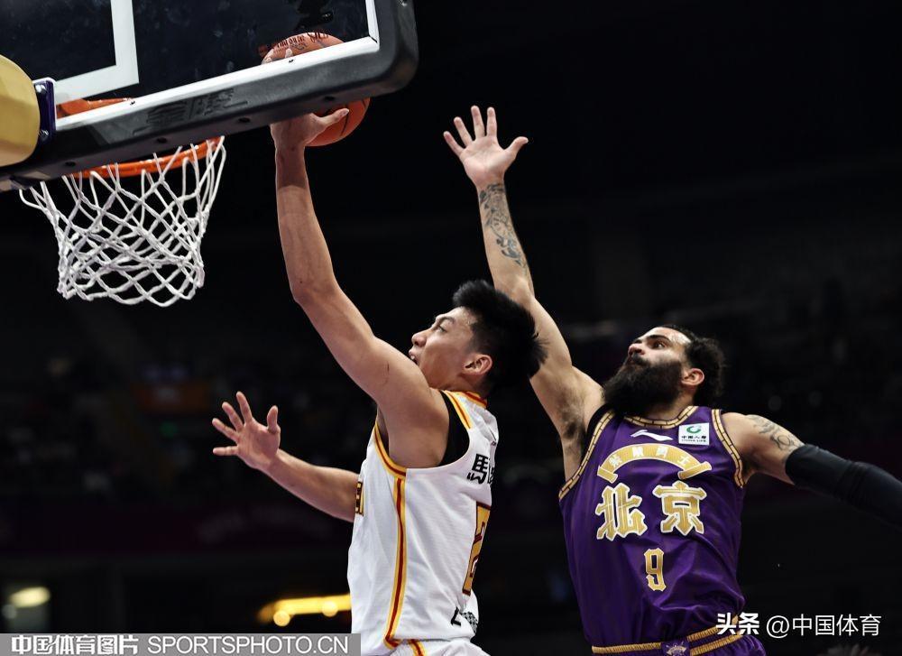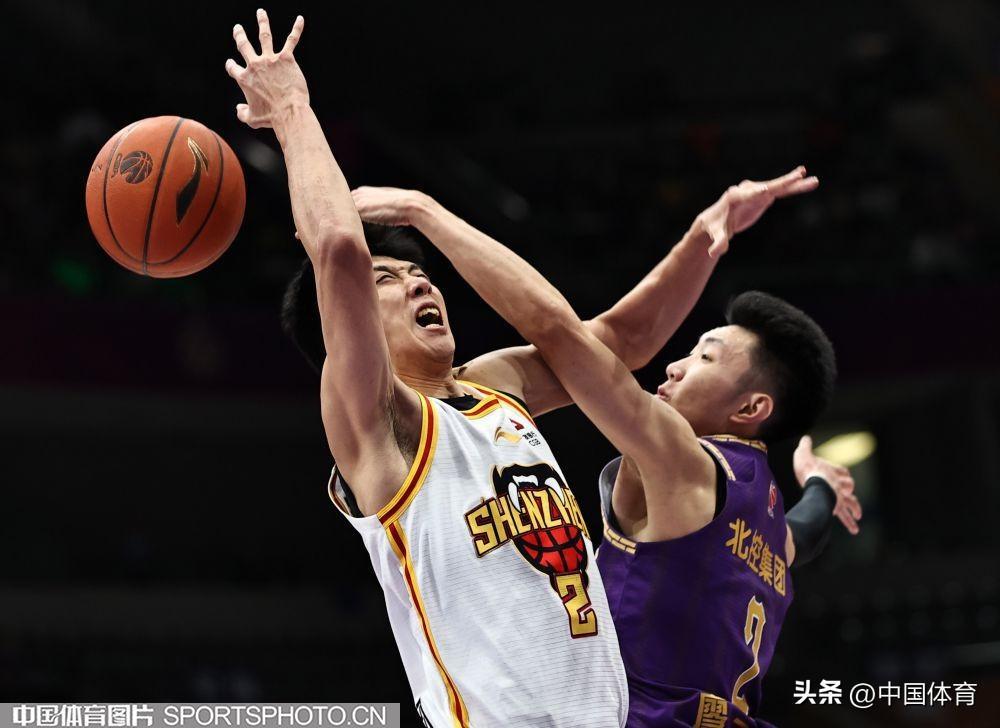 深圳馬可波羅隊盧鵬羽籃下進攻被北京控股隊廖三寧封蓋