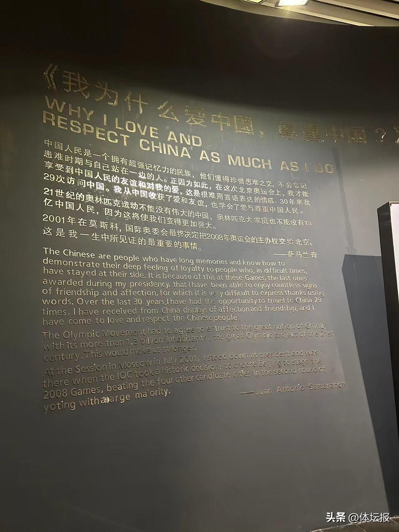 紀念館內,從天津發出的著名的中國“奧運三問”醒目懸掛,“中國何時能派人蔘加奧運會、中國人何時能獲得奧運金牌、中國何時能舉辦奧運會”。有意思的是,其中的後“兩問”都由薩馬蘭奇親自見證、推動完成——