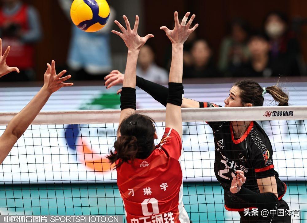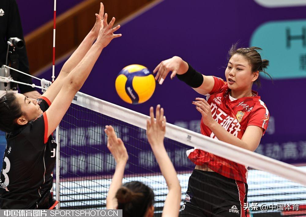 中國體育訊 1月23日,2023-2024中國女子排球超級聯賽第3、4名決賽在北京汽車光彩體育館舉行。江蘇中天鋼鐵女排客場3比0戰勝北京北汽女排,在三場兩勝制的比拼中搶得先機。(中國體育圖片 王憲民 攝)王雲蕗(左)扣球金燁(右)扣球申宏藝(右)扣球江蘇隊慶祝得分倪非凡(右)接球吳夢潔(左)扣球吳夢潔、萬梓玥(左)攔網龔翔宇、楊佳(右)攔網吳夢潔(左二)扣球萬梓玥(左)、唐欣攔網刁琳宇、楊佳(右)攔網刁琳宇(右)扣球江蘇隊慶祝獲勝
