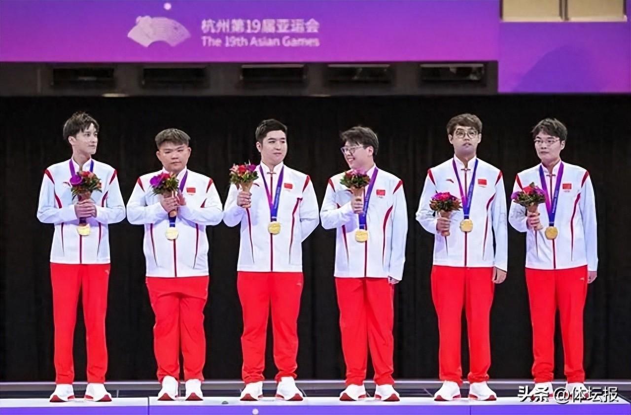 10月2日,杭州亞運會刀塔決賽,中國隊選手在頒獎儀式上。新華社記者 顏麟蘊 攝