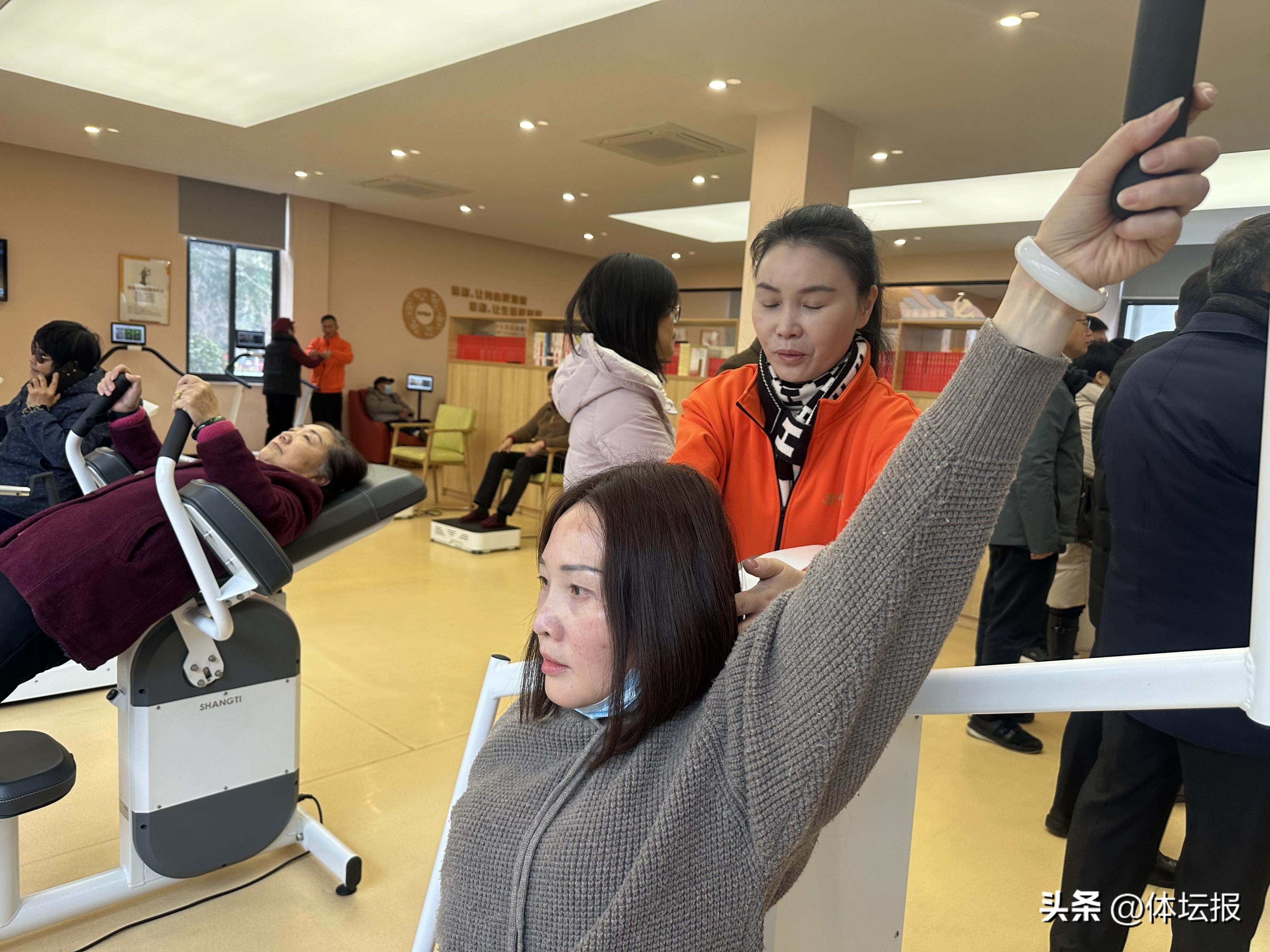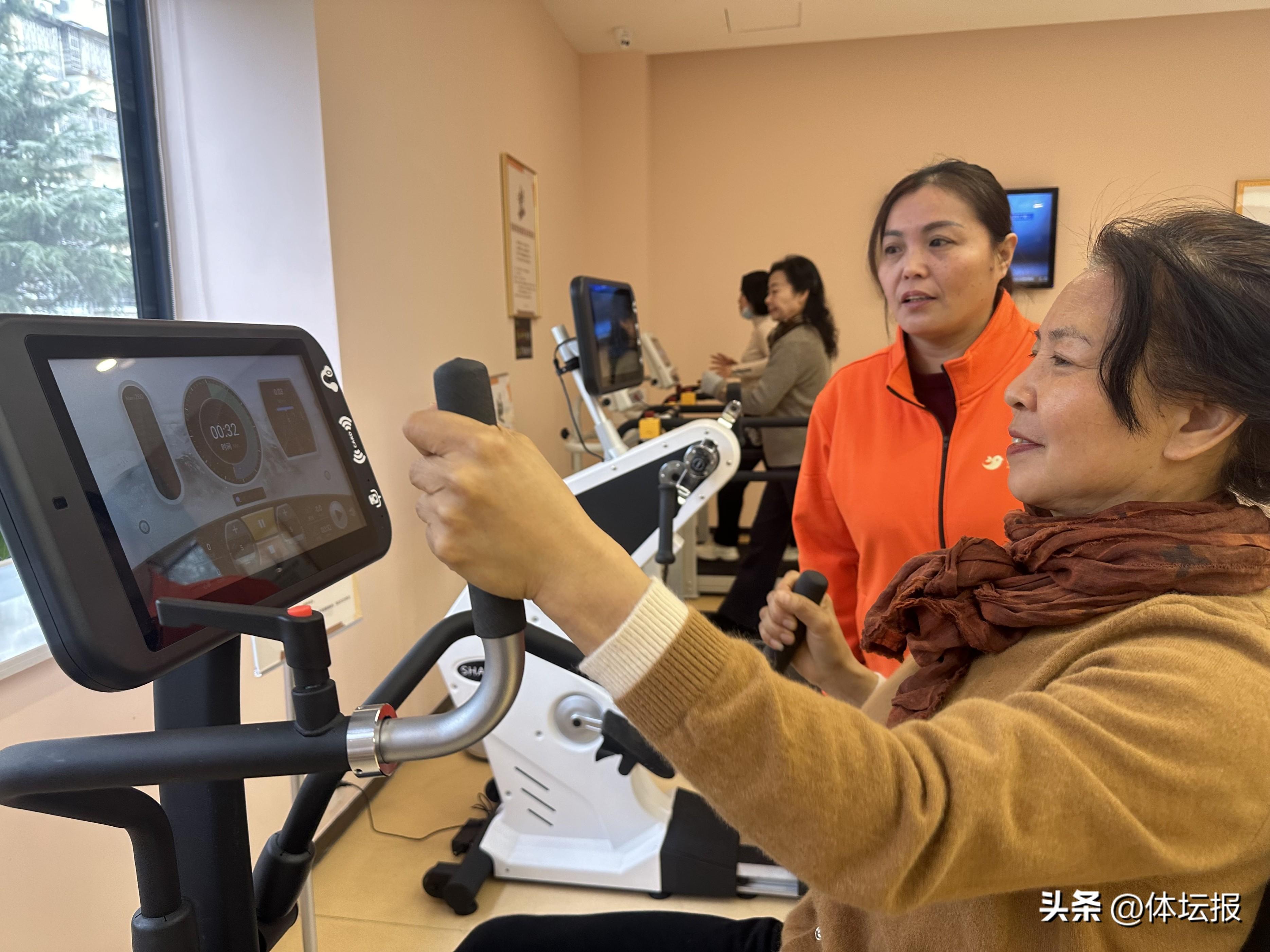 值得一提的是,該中心配備了智慧化管理系統,所有鍛鍊的居民都可以通過手機端實時掌握自己的體測數據、運動處方、鍛鍊情況、健康檔案數據等,可以制定更有針對性的鍛鍊計劃。老人的子女也可以通過親情賬號綁定,瞭解父母鍛鍊情況。所有鍛鍊人員都可以通過體質檢測,生成報告,運動處方,運動方案四個階段閉環推進的方式,形成運動健康促進系統,並可針對用戶的多次循環報告進行對比,判斷運動效果,探索運動促進健康新模式。
