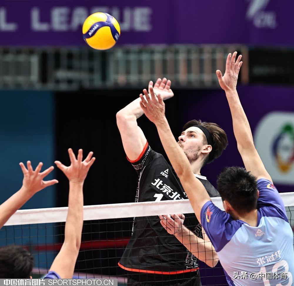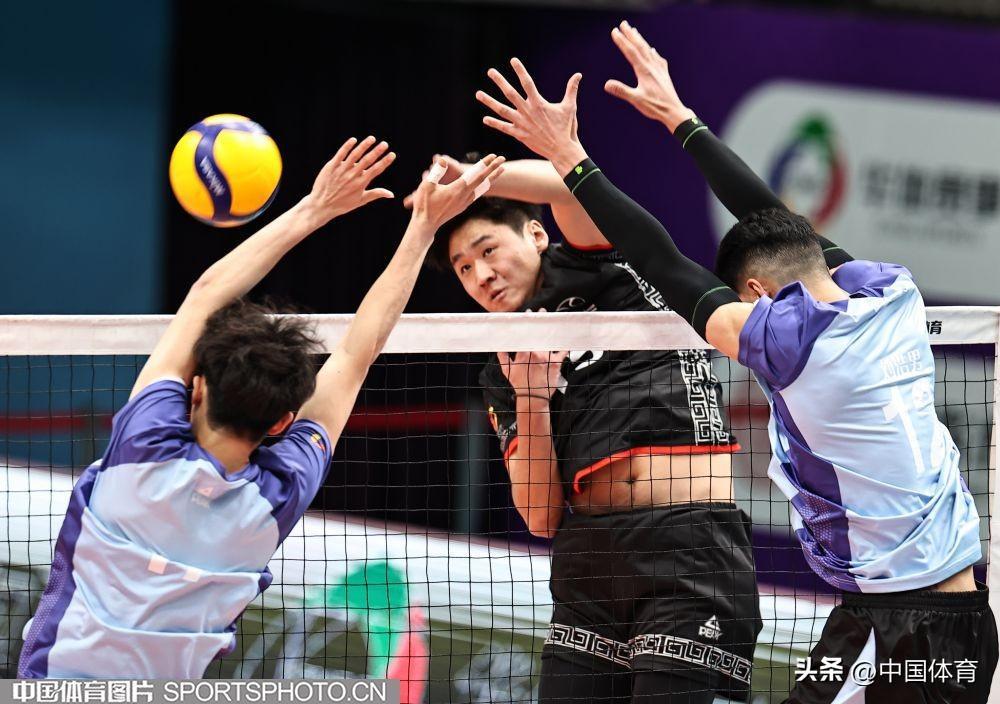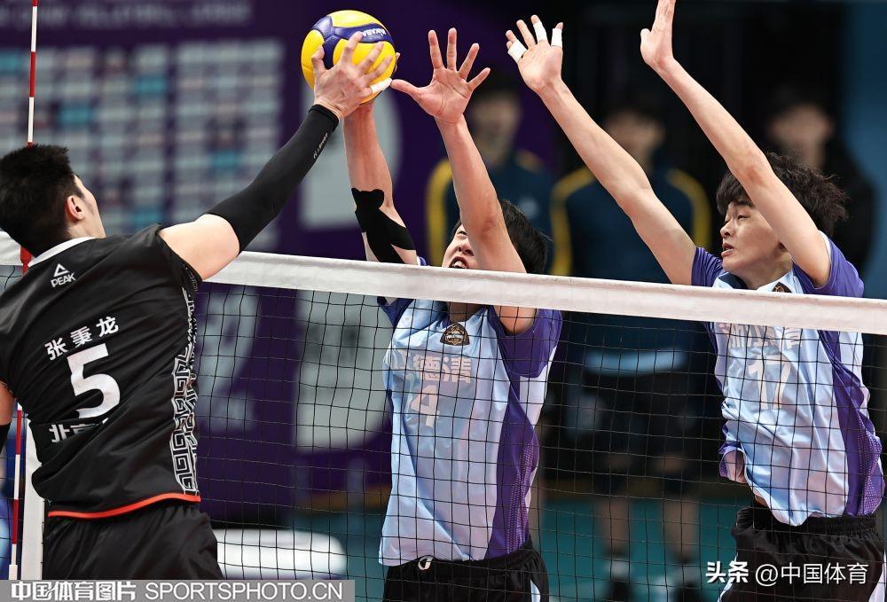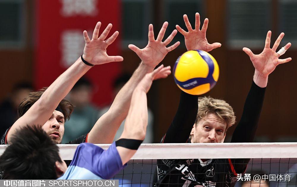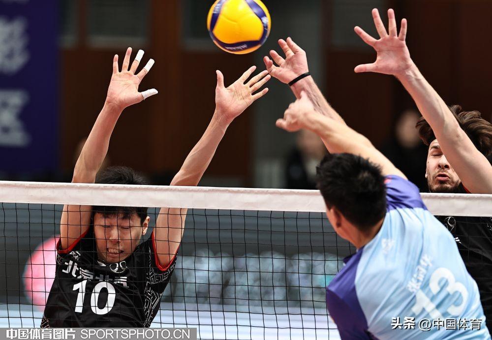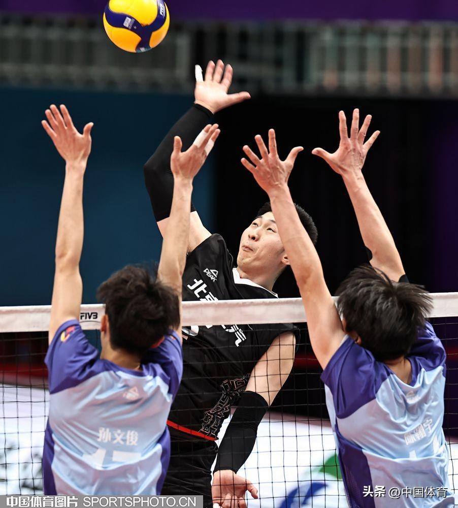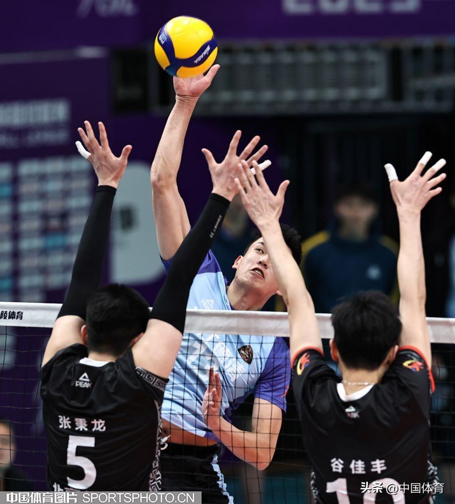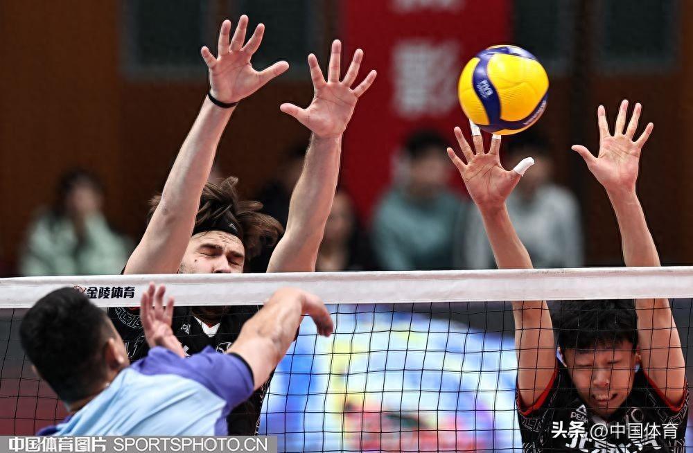 中國體育訊 2月1日晚,2023-2024中國男排超級聯賽第二階段複賽C組第十九輪,衛冕冠軍北京北汽主場以3比0戰勝國手衆多的浙江德清。(中國體育圖片 王憲民 攝)北京隊員攔網(左起)北京隊馬克西姆、谷佳豐、鄧忻朋攔網北京隊員選手攔網北京隊張秉龍(左二)扣球北京隊馬克西姆(右)、谷佳豐攔網浙江隊李成康、孫文俊(右)攔網浙江隊張冠華(左二)扣球北京隊鄧忻朋(左)扣球北京隊胡朕卓(左二)扣球北京隊馬克西姆扣球
