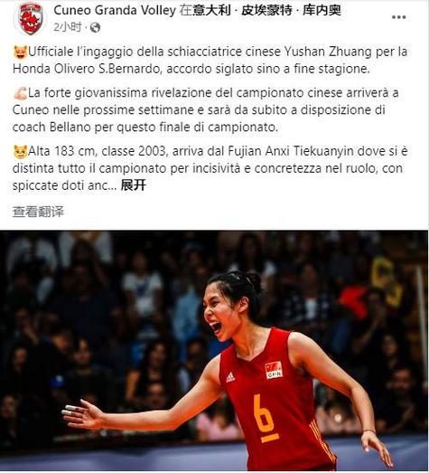然而就在大家以爲莊宇珊會順利進入國家隊集訓大名單,接受教練團隊的考覈,衝擊一下國家隊世聯賽大名單的時候,近日,意大利庫內奧女排官方宣佈中國主攻莊宇珊加盟,她將代表球隊征戰本賽季剩餘比賽。此次登陸意甲女排聯賽,是來自福建的莊宇珊職業生涯首次留洋。據分析,意大利聯賽的一傳和發球非常好,這將爲莊宇珊提供很好的歷練機會,有助於她的成長。![]()