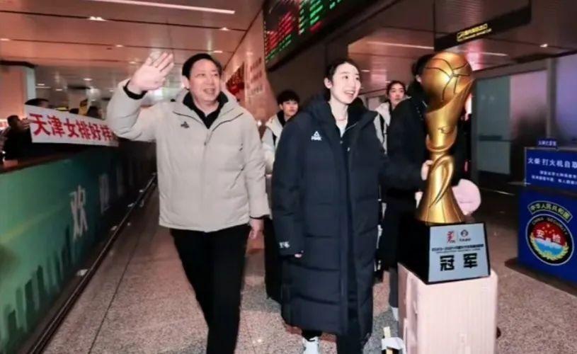 值得一提的是,在機場,天津女排的姑娘們受到了球迷們的熱烈歡迎,不少熱愛排球的球迷紛紛前去接機。李盈瑩,姚迪等功臣球員都被送上了鮮花和各種祝福的物品。而作爲本次聯賽天津女排的隊長姚迪,更是捧着冠軍獎盃,和主教練王寶泉一起走在了隊伍的最前方,接受球迷們的祝福!