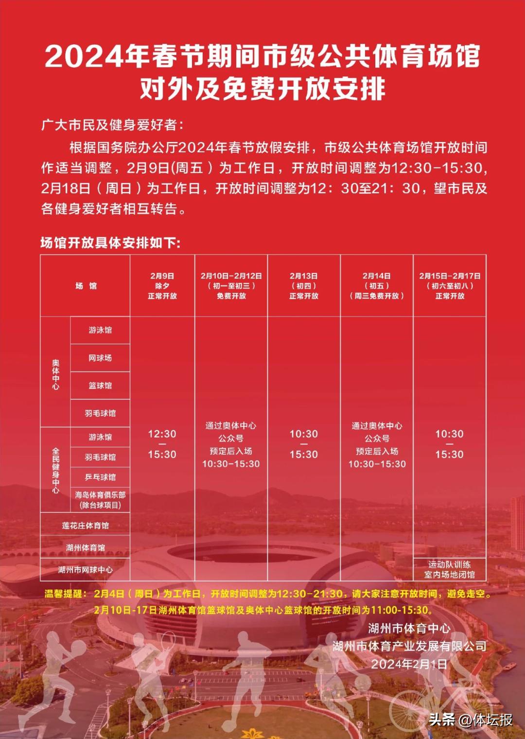體育館:2月9日上午正常開放,12:00-22:00期間閉館;2月10日-17日期間白天免費對外開放,晚上正常開放。室外網球場、乒乓球館,鍛鍊市民可通過自助機預約購票,可提前一天預約。