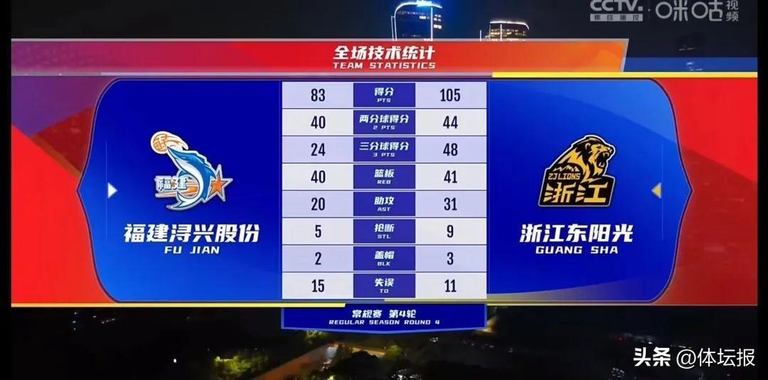 與首節相比,梅克的狀態下滑明顯,被麥基換下時也顯得悶悶不樂,福建隊的進攻大多依賴陳林堅,而東陽光則是多點開花,孫銘徽、許可、許鍾豪都能有所斬獲。隨着孫銘徽最後一攻上籃得手,半場戰罷,東陽光仍以52:41領先。