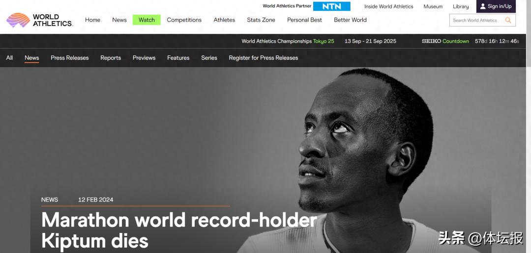 今天凌晨,世界田聯官網發佈訃告,馬拉松世界紀錄保持者基普圖姆在當地時間2月11日因車禍去世,年僅24歲。