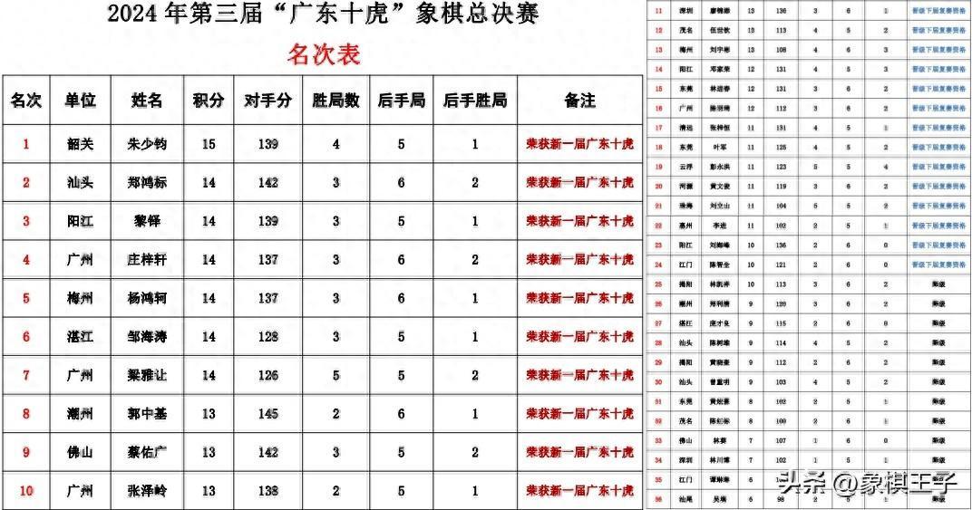 有四個新十虎,莊梓軒、梁雅讓、郭中基、張澤嶺,新老陣容搭配合理,也代表了廣東象棋源源不息的棋路生脈。