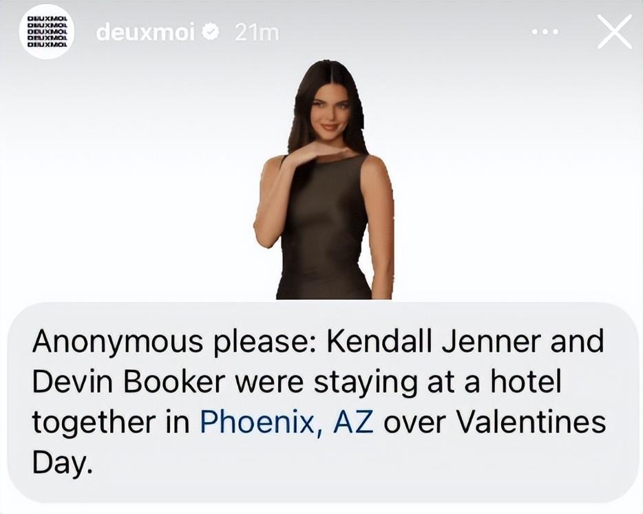 根據美國八卦媒體Deuxmoi的最新爆料,卡戴珊家族頂流肯達爾-詹娜,在與嘻哈歌手“壞兔兔”分手之後,疑似又與前任德文-布克搞起了曖昧,兩人一起度過了情人節, 並且一整天都在的亞利桑那州的一家豪華酒店裏,不出意外的話,狗仔隊很快就能拍到詹娜與布克合體的甜蜜照片了。