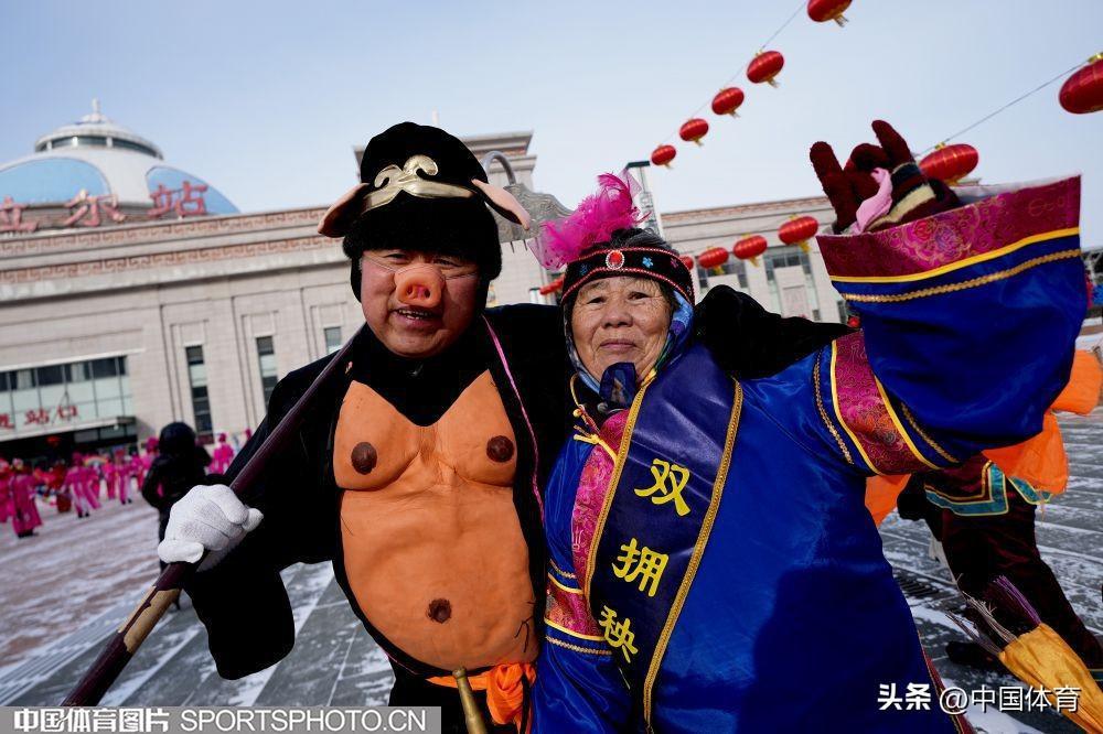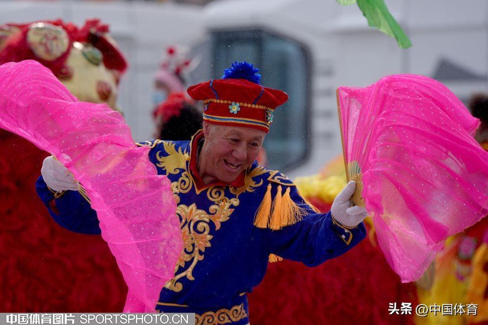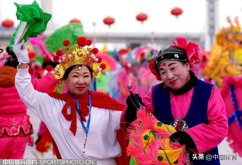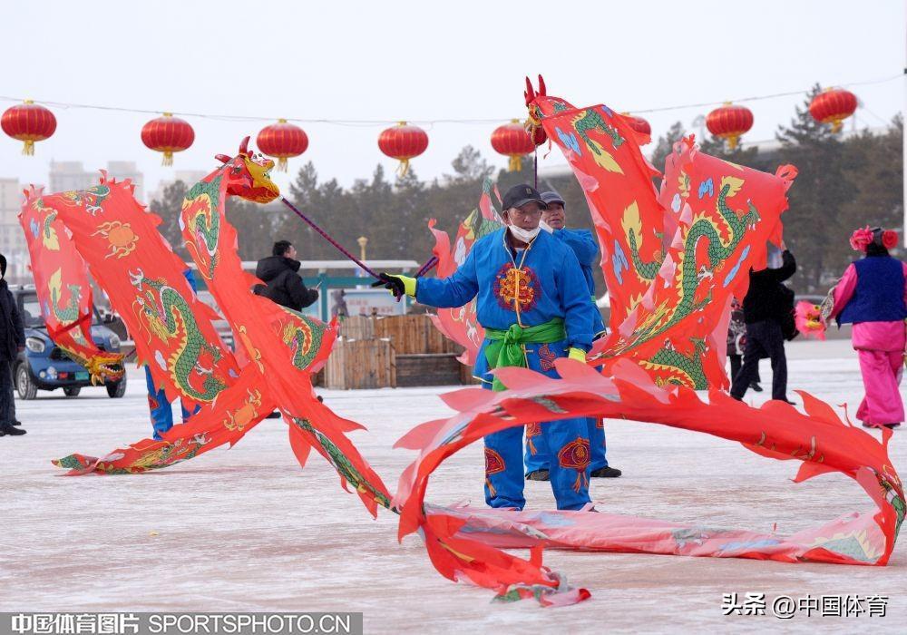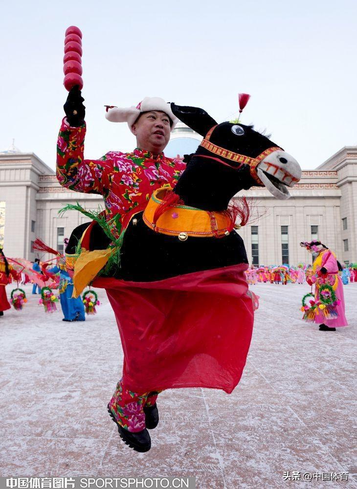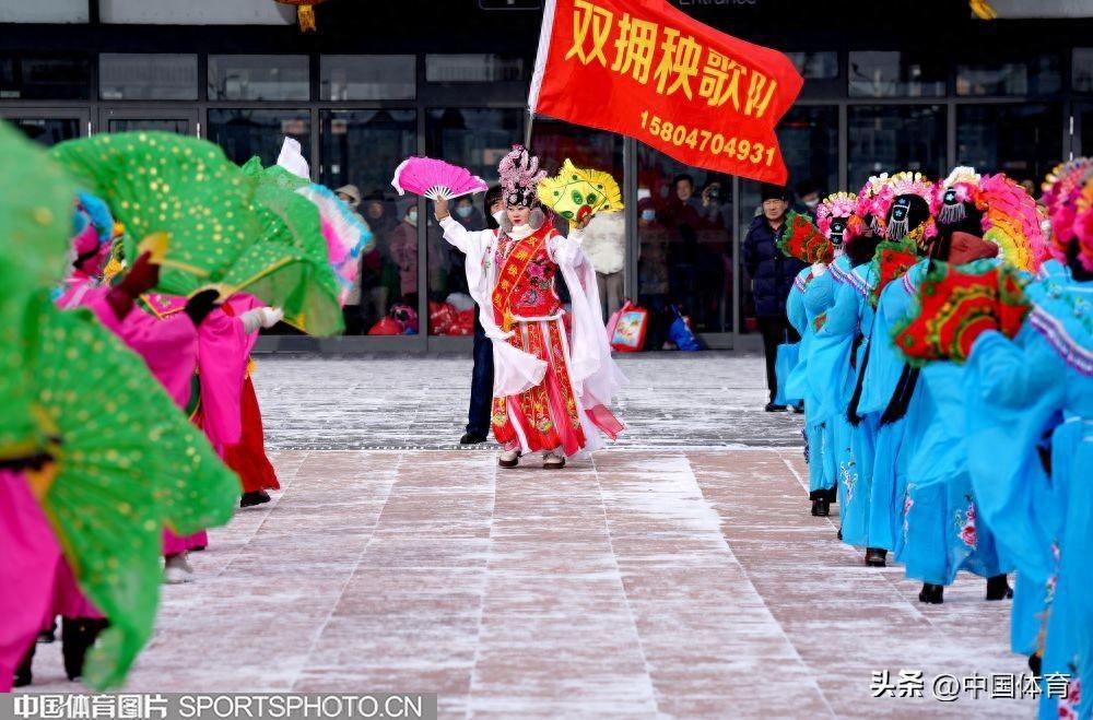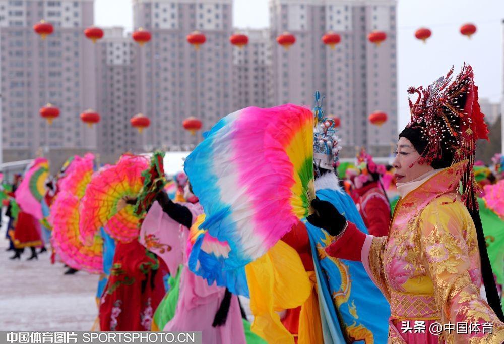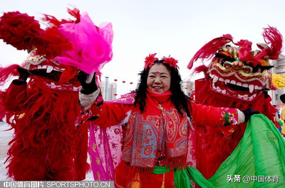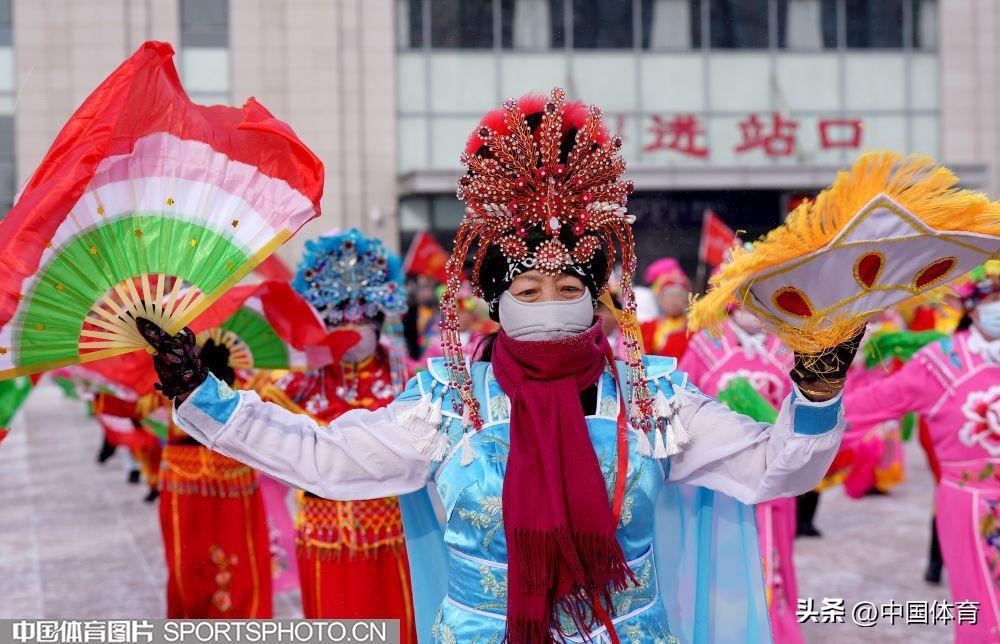 中國體育訊 2月19日,第十四屆全國冬季運動會在內蒙古如火如荼地進行。呼倫貝爾市海拉爾區老體協在海拉爾站前廣場組織全民健身大拜年活動,400名中老年健身愛好者用火紅的秧歌迎接“十四冬”。圖爲秧歌表演。(中國體育圖片 倪敏哲 攝)