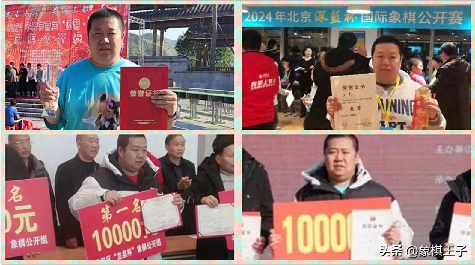 王昊也不負雙大師的威名,進入2024年,一口氣在安頤康養杯、平壩龍泉杯、伯明·雙擁杯,連奪三項象棋桂冠,收穫數萬獎金的同時,還奮勇拿下了深藍杯國象公開賽的亞軍。