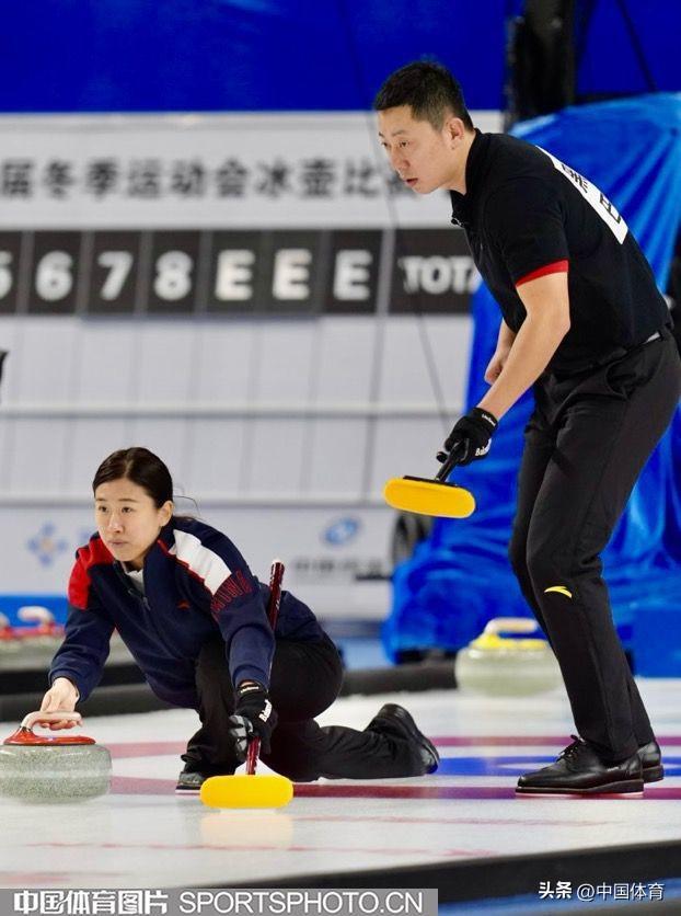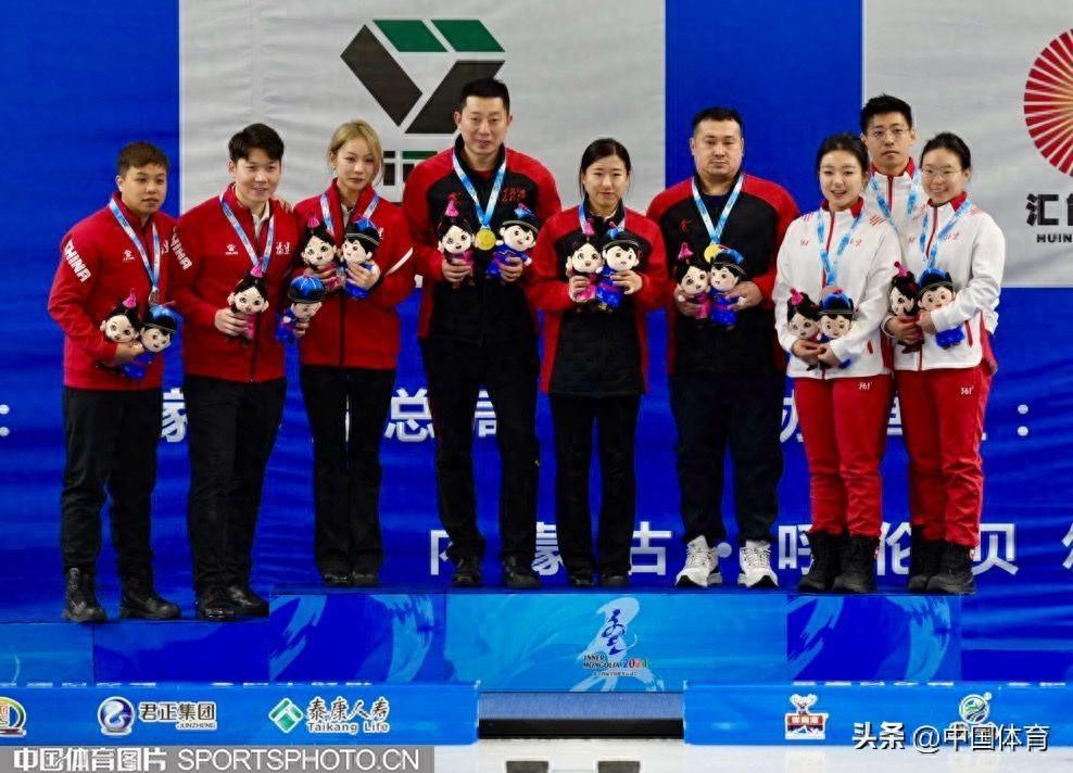 中國體育訊 2月20日,第十四屆全國冬季運動會公開組冰壺混雙決賽在內蒙古冰上運動中心冰壺館舉行。黑龍江選手巴德鑫/姜懿倫奪得冠軍,福建選手王智宇/朱澤仰旭、北京選手凌智/韓雨分獲亞軍和季軍。(中國體育圖片 倪敏哲 攝)