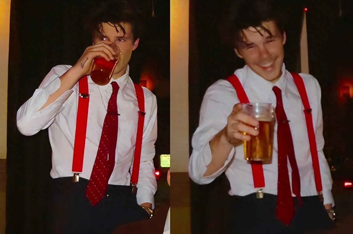 這次辦生日派對,19歲的克魯茲一身白色襯衣,搭配紅色揹帶褲,優雅又紳士,還有一絲少年氣,不過“囧三”依稀可見的鬍鬚又平添成熟氣息,一顰一笑之間,透露着老爹貝克漢姆年輕時候的風味,不得不說,這基因實在太強大了。