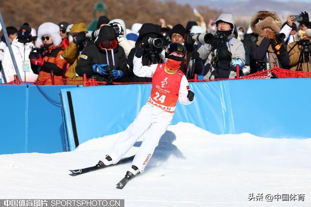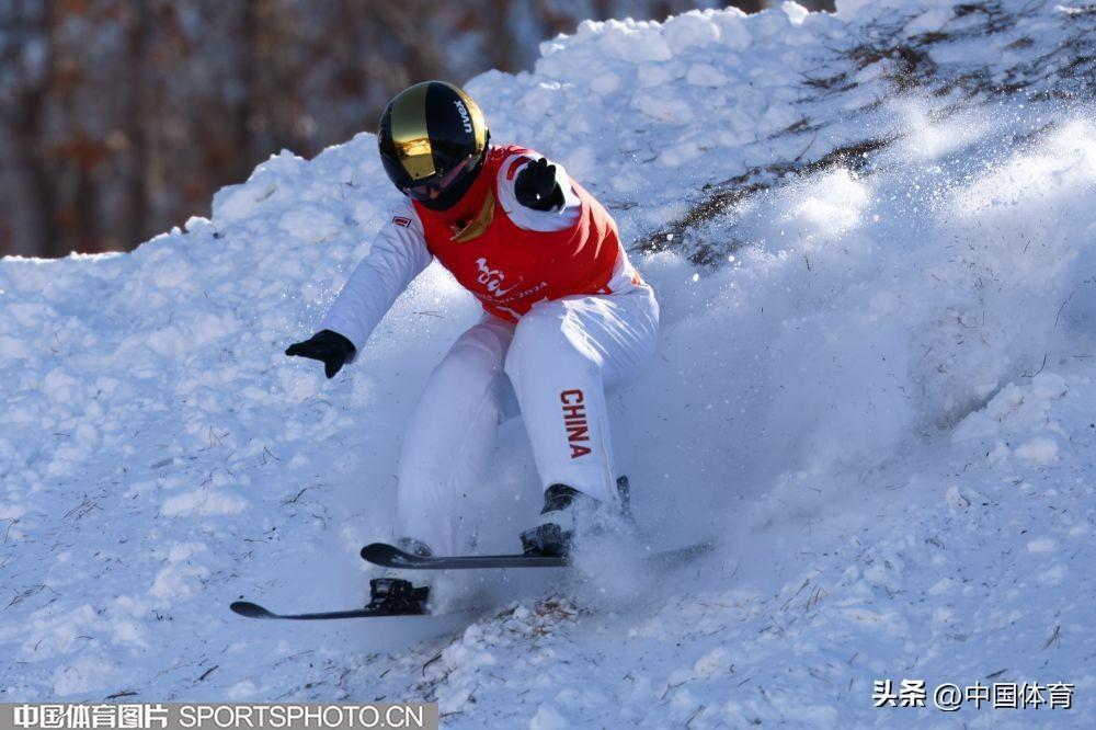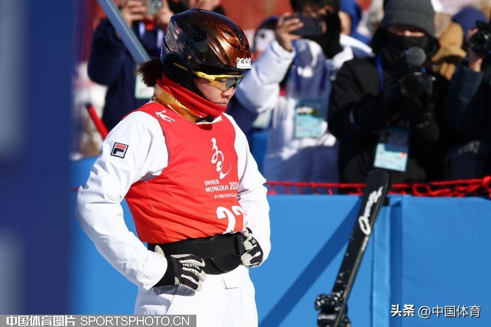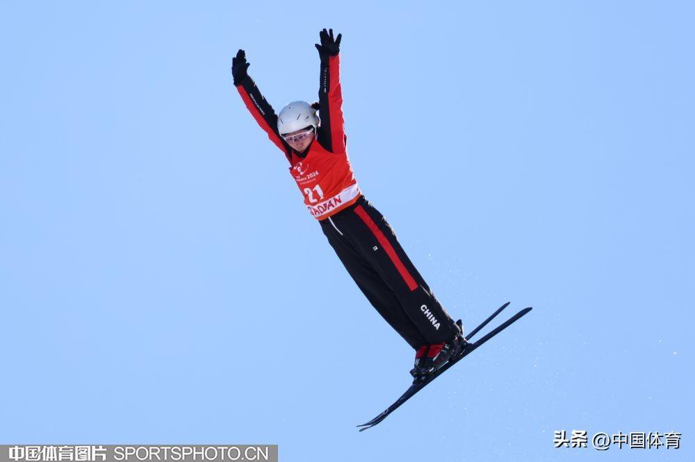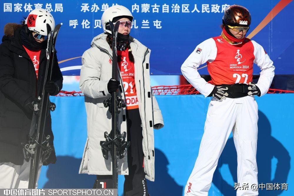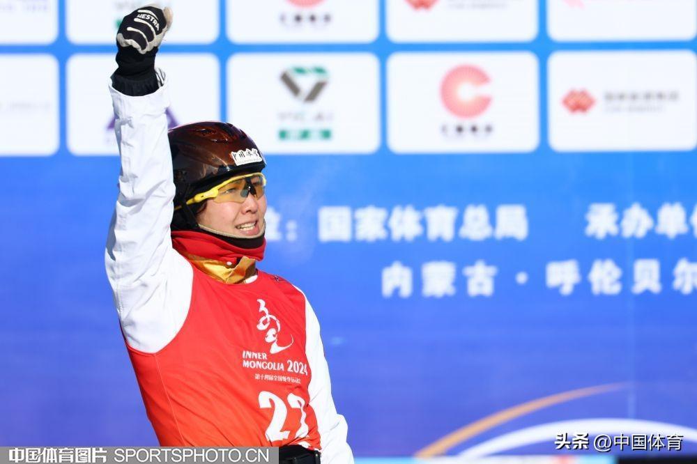 中國體育訊 2月21日,第十四屆全國冬季運動會自由式滑雪空中技巧公開組女子個人決賽,在內蒙古呼倫貝爾市扎蘭屯金龍山滑雪場舉行。黑龍江隊孔凡鈺以94.82分獲得金牌,內蒙古隊邵琪以88.51分獲得銀牌,山西隊劉宣赤以87.00分獲得銅牌。代表黑龍江出戰的奧運冠軍徐夢桃在決賽第三輪落地出現失誤,以78.96分排名第五位。(中國體育圖片 安靈均 攝)