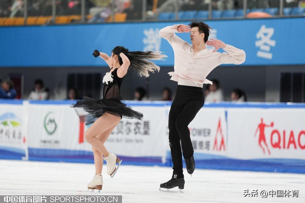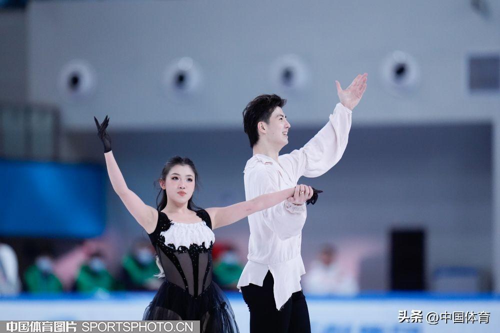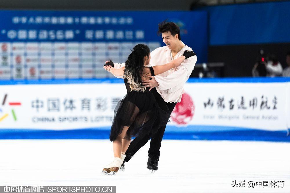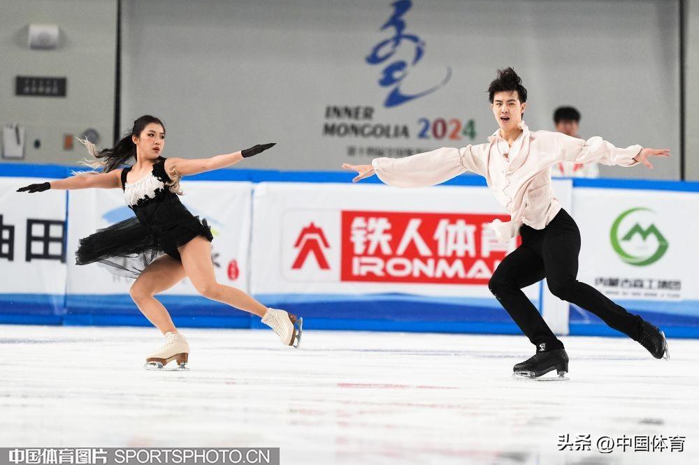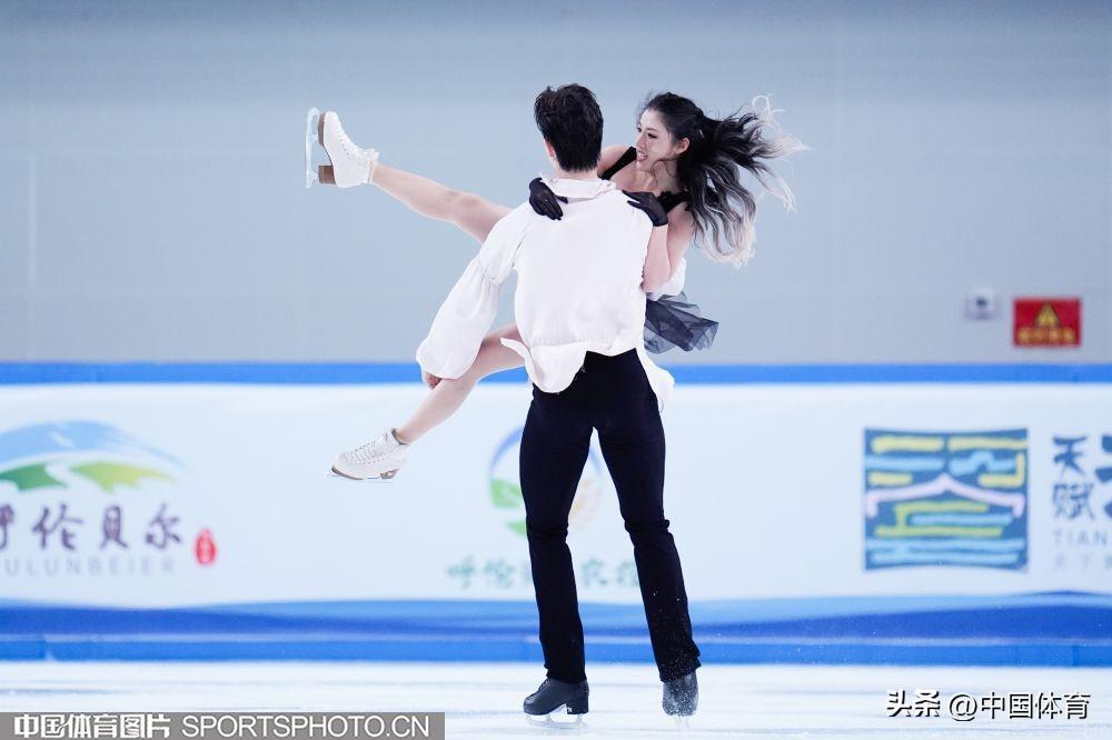 中國體育訊 2月21日,第十四屆全國冬季運動會花樣滑冰項目在在內蒙古冰上運動訓練中心短道花樣館拉開帷幕。率先進行的公開組團體冰上舞蹈韻律舞比賽中,代表北京隊出戰的王詩玥/柳鑫宇以75.43分高居榜首,黑龍江組合陳溪梓/邢珈寧以70.17分排名第二位,四川組合石尚/吳楠以62.07分暫列第三。(中國體育圖片 魏徵 攝)