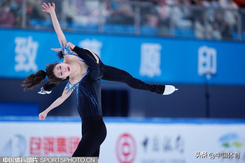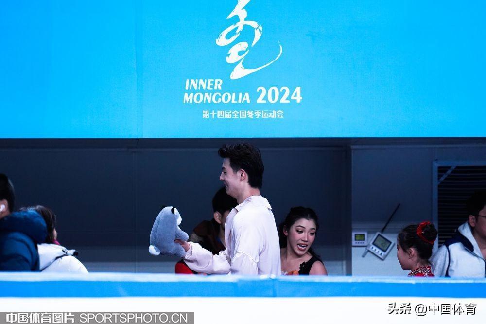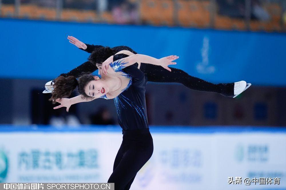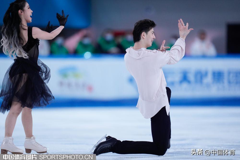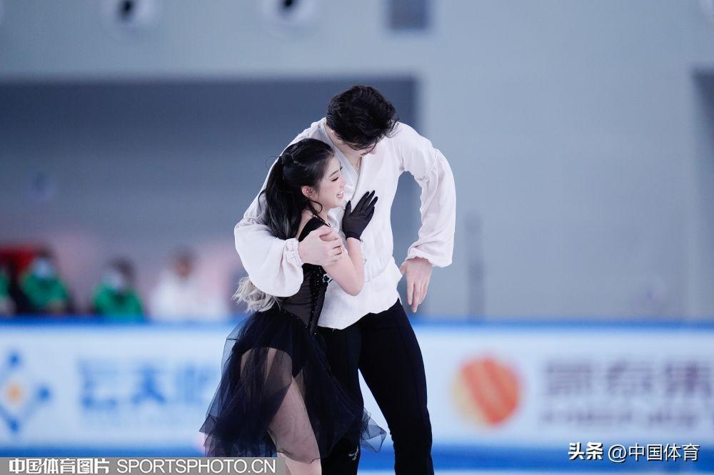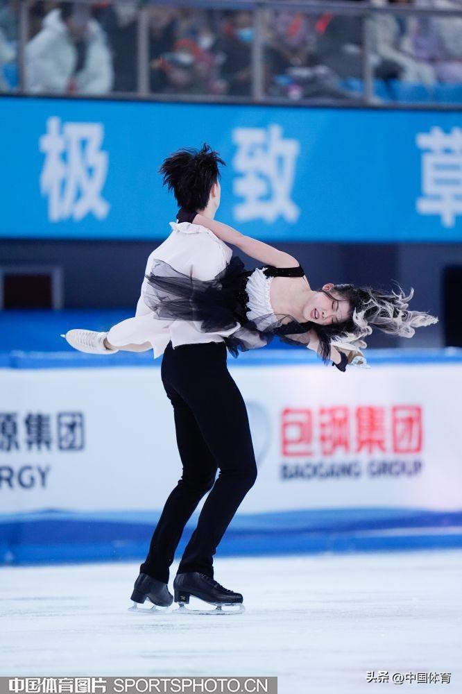 中國體育訊 2月21日,第十四屆全國冬季運動會花樣滑冰項目在在內蒙古冰上運動訓練中心短道花樣館拉開帷幕。率先進行的公開組團體冰上舞蹈韻律舞比賽中,代表北京隊出戰的王詩玥/柳鑫宇以75.43分高居榜首,黑龍江組合陳溪梓/邢珈寧以70.17分排名第二位,四川組合石尚/吳楠以62.07分暫列第三。(中國體育圖片 魏徵 攝)