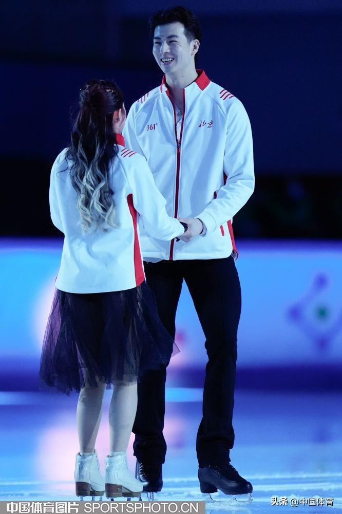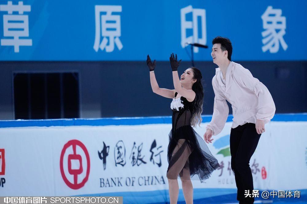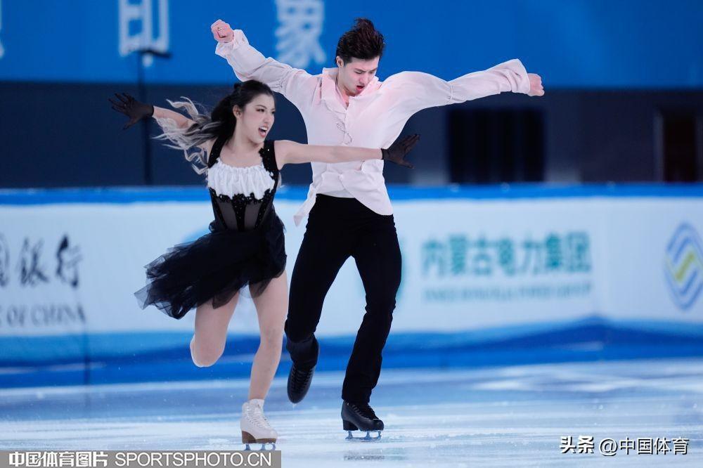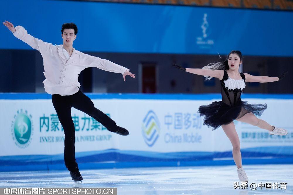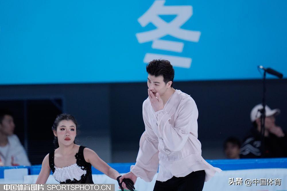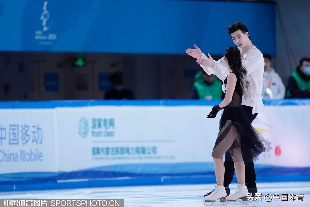 中國體育訊 2月21日,第十四屆全國冬季運動會花樣滑冰項目在內蒙古冰上運動訓練中心短道花樣館開戰,率先進行的是公開組團體冰上舞蹈韻律舞項目的比賽。圖爲代表北京出戰的王詩玥/柳鑫宇組合進行賽前熱身。(中國體育圖片 魏徵 攝)