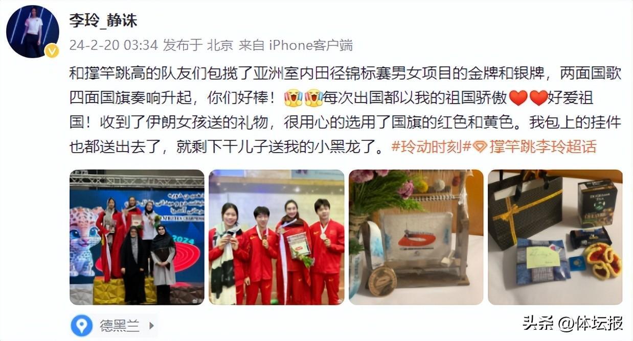 從2016年多哈室內亞錦賽到如今,加上本次奪冠,李玲已經三次在室內亞錦賽上奪冠。除此之外,她還曾拿下2014年、2018年和2023年三屆亞運會金牌、四次亞錦賽冠軍、十次亞洲最高級別賽事冠軍。