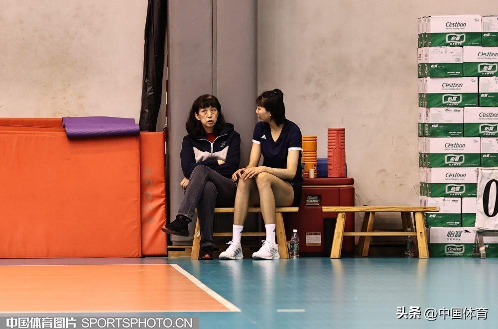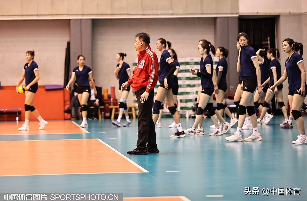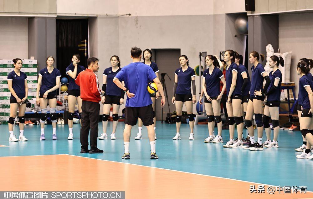 中國女排主教練蔡斌爲隊員佈置訓練內容