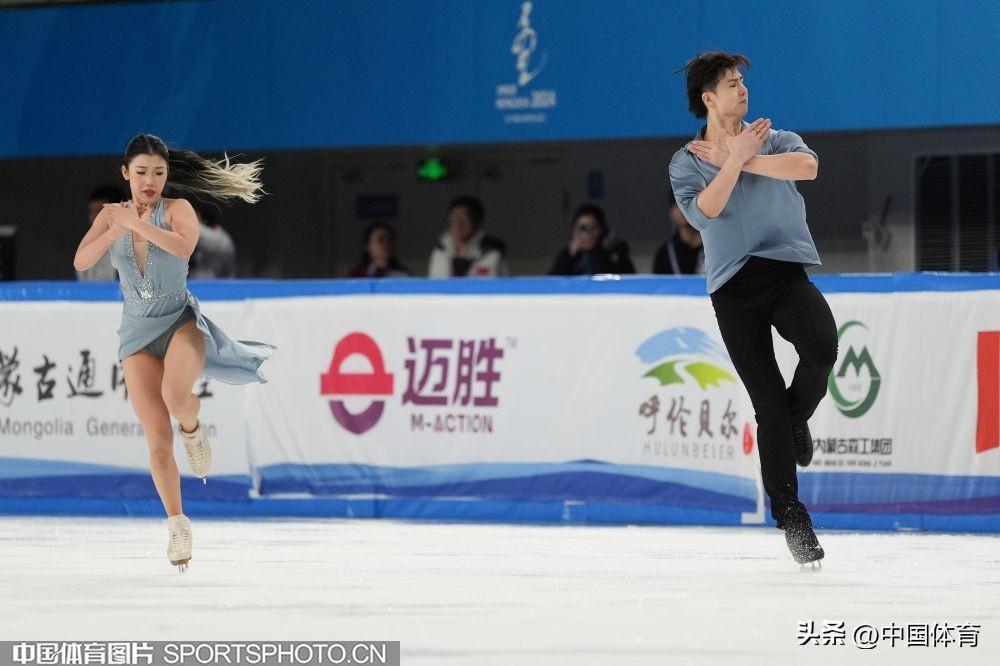 中國體育訊 2月22日,第十四屆全國冬季運動會展開花滑公開組團體冰舞自由舞項目的爭奪。昨日在冰舞韻律舞中以絕對優勢領跑的北京隊王詩玥/柳鑫宇繼續高水平發揮,最終以113.04分再拔頭籌。黑龍江隊陳溪梓/邢珈寧以104.79分位居第二,廣東隊肖紫兮/何凌昊以97.02分排名第三。(中國體育圖片 魏徵 倪敏哲 攝)