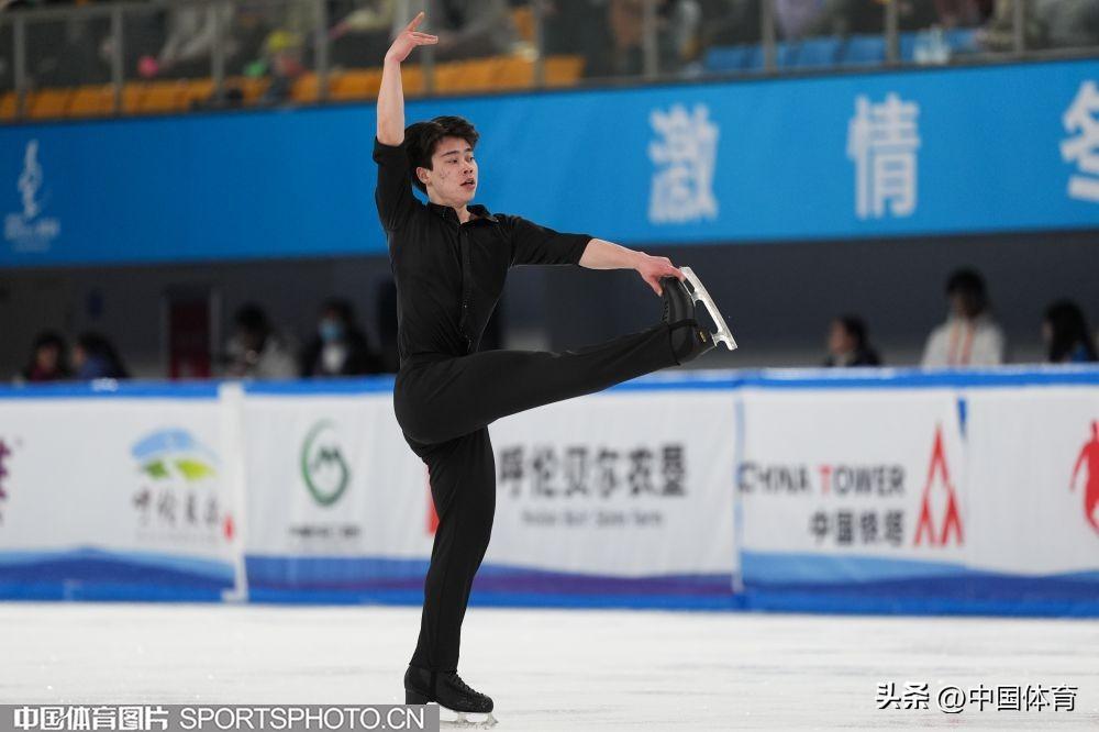 中國體育訊 2月22日,在第十四屆全國冬季運動會花滑公開組團體男子單人自由滑比賽中,代表北京隊出戰的金博洋以169.57的成績位列第一。這一成績領先了第二名廣東隊的戴大衛20多分,後者成績爲144.82分。黑龍江隊韓文寶以134.49分排名第三位。(中國體育圖片 倪敏哲 魏徵 攝)