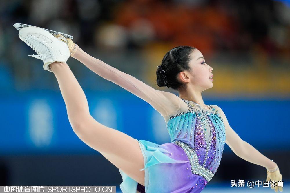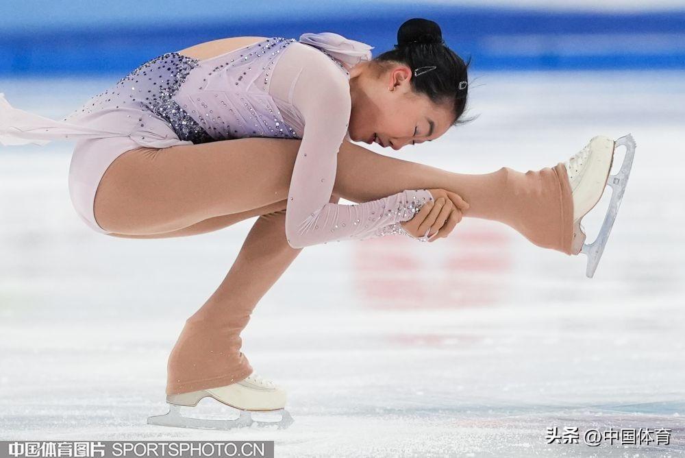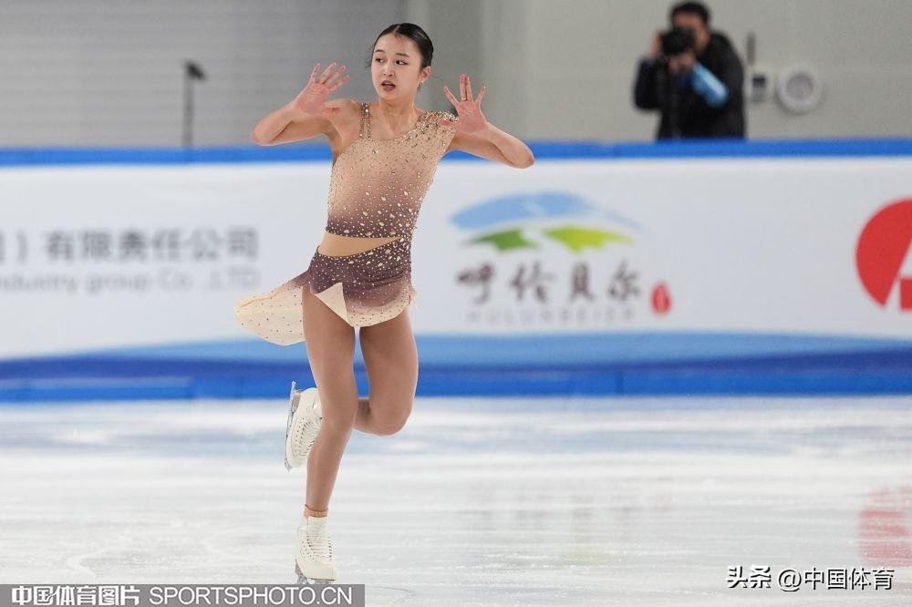 中國體育訊 2月22日晚,在第十四屆全國冬季運動會花樣滑冰公開組團體最後一項女單自由滑比賽中,北京隊張瑞陽以117.87分位列第一,四川隊金書賢、吉林隊張夢琪、廣東隊劉玉萱和黑龍江隊朱易排名第二至第五位。(中國體育圖片 倪敏哲 魏徵 攝)