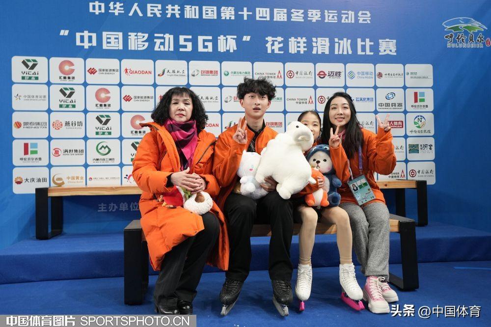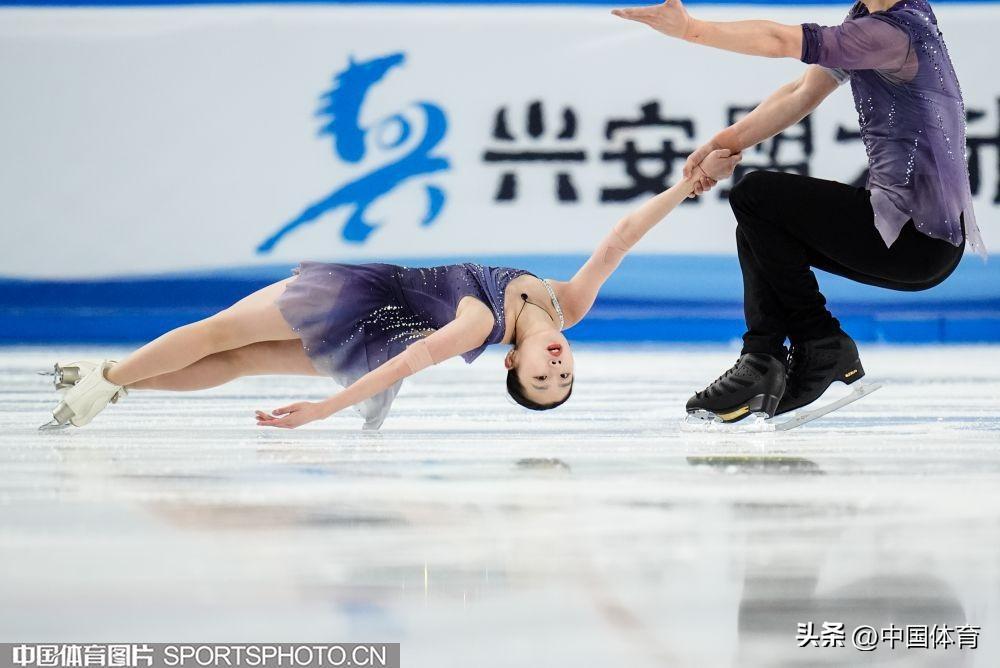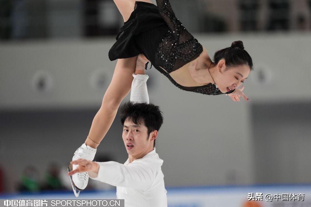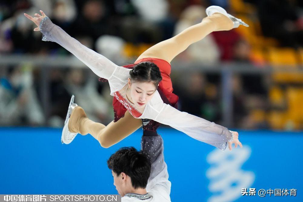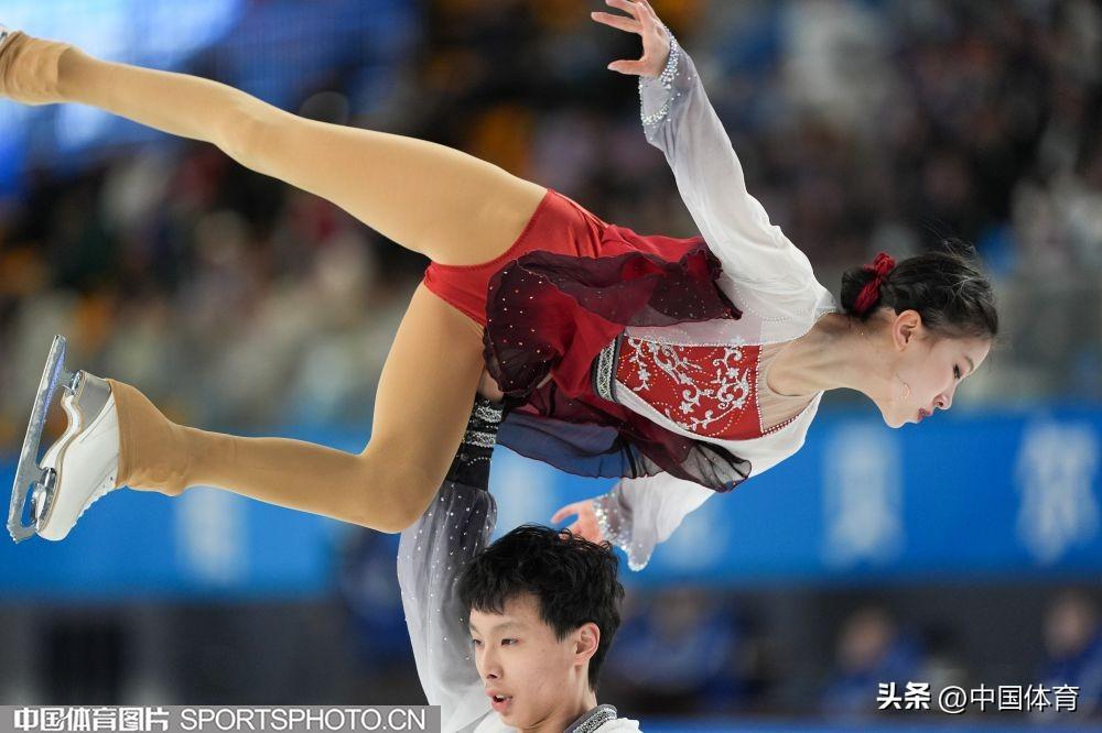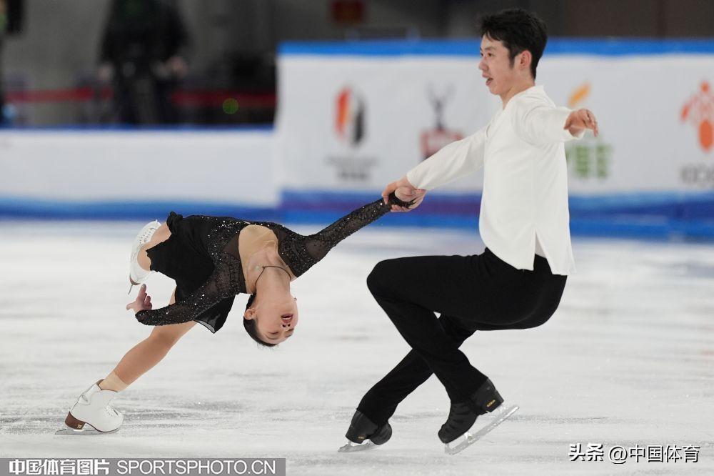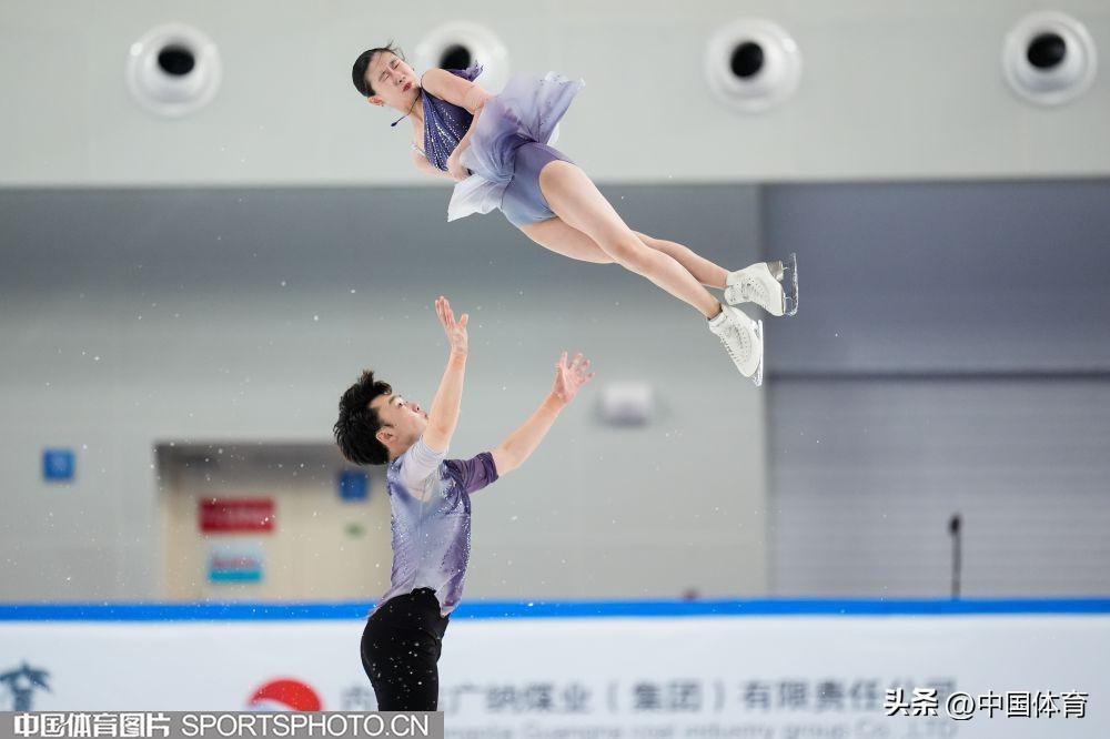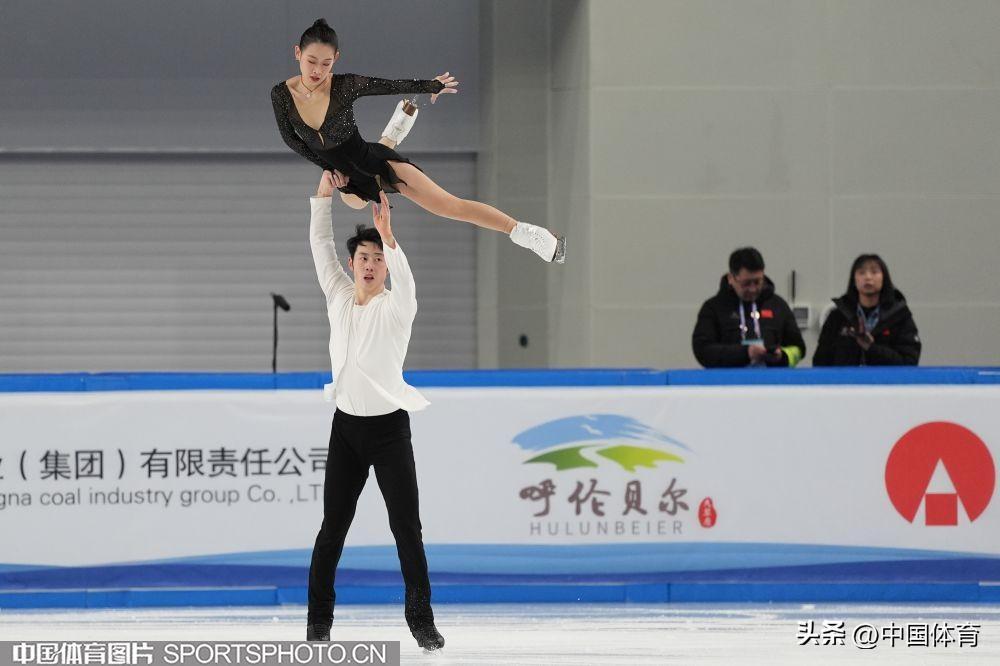 中國體育訊 2月22日,第十四屆全國冬季運動會花滑公開組團體雙人滑自由滑在內蒙古冰上運動訓練中心短道花樣館舉行。來自北京的彭程/王磊以122.78分成績位列第一,黑龍江隊張思陽/楊泳超和廣東隊郭蕊/張益文分列二、三位,成績分別爲108.33分和105.33分。昔日雙人滑搭檔、奧運冠軍隋文靜和韓聰分別以教練員和裁判員的身份亮相賽場。(中國體育圖片 倪敏哲 魏徵 攝)
