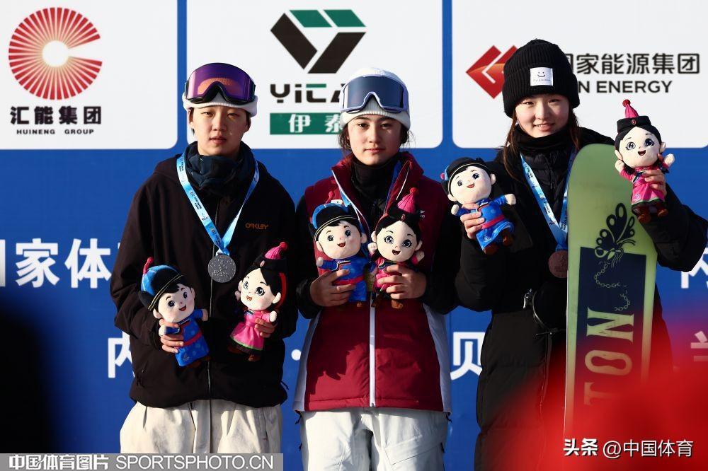 中國體育訊 2月23日,第十四屆全國冬季運動會單板滑雪公開組女子大跳臺決賽在內蒙古呼倫貝爾扎蘭屯金龍山滑雪場開賽。廣西隊甘佳佳奪得冠軍,雲南隊陳鋁道和雲南隊何廷佳分獲亞軍和季軍。(中國體育圖片 安靈均 攝)甘佳佳在比賽中陳鋁道在比賽中何廷佳在比賽中何廷佳在比賽中何廷佳在比賽中(左起)亞軍陳鋁道、冠軍甘佳佳、季軍何廷佳在頒獎儀式上