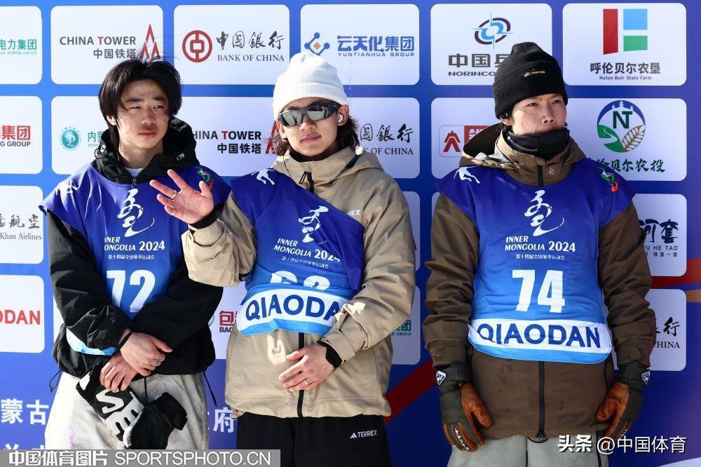 蘇翊鳴(中)、黑龍江選手高雪松(左)和山東選手劉昊宇在比賽中