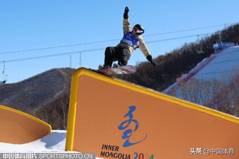 中國體育訊 2月24日,第十四屆全國冬季運動會單板滑雪公開組男子坡面障礙技巧決賽,在內蒙古呼倫貝爾扎蘭屯金龍山滑雪場開賽。代表山西出戰的蘇翊鳴以96.60分獲得冠軍。這是他繼昨日單板滑雪公開組男子大跳臺後收穫的第二枚金牌。圖爲蘇翊鳴在比賽中。黑龍江隊高雪松和山東隊劉昊宇分獲銀牌和銅牌,成績分別爲83.20分和78.00分。(中國體育圖片 安靈均 攝)